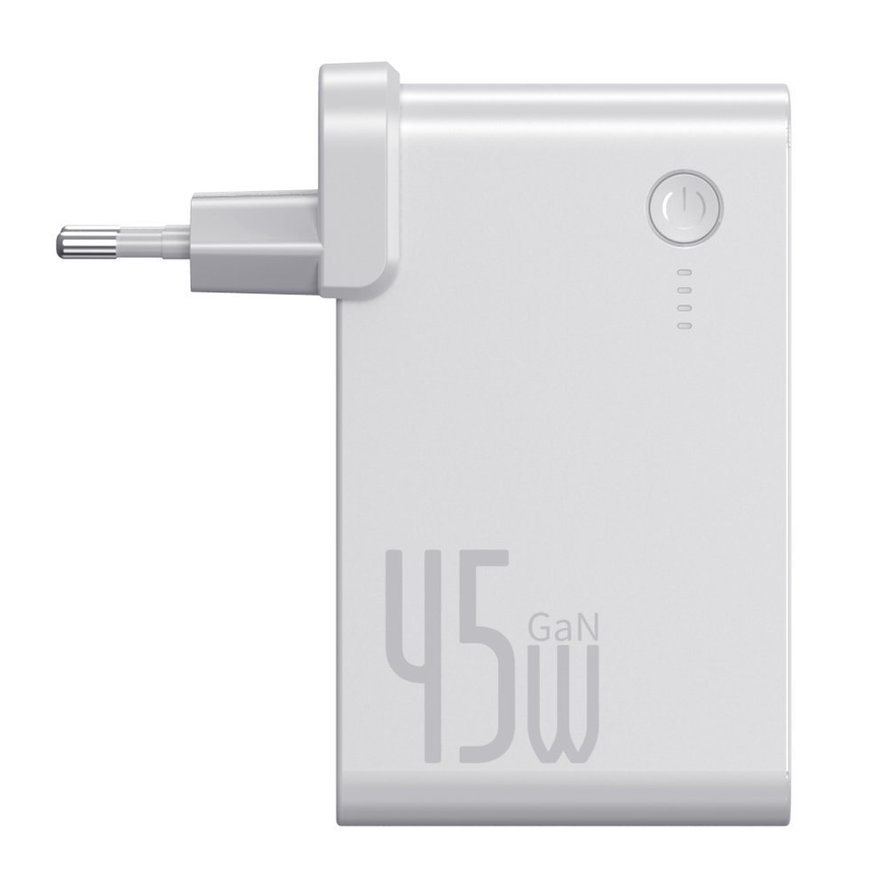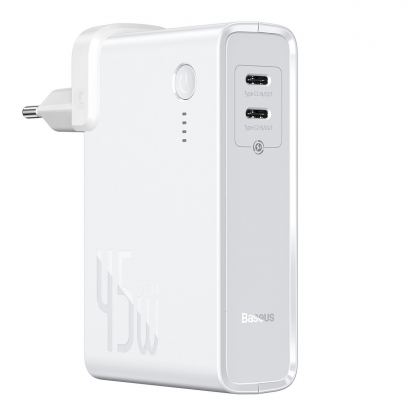 Baseus GaN Charger 45W Power Bank (PPNLD-F02) - външна батерия 10000 mAh и захранване за ел. мрежа с 2 x USB-C изходи и GaN технология (бял)