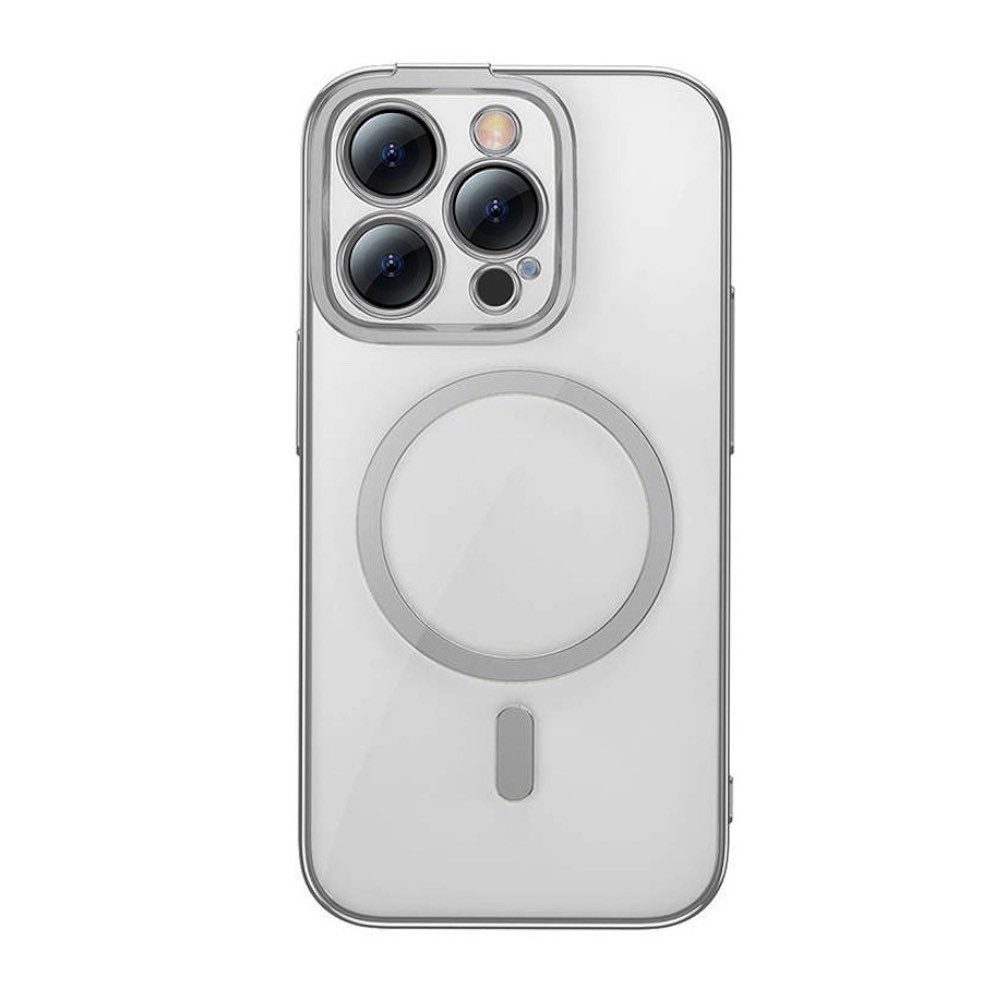 Baseus Glitter MagSafe Hybrid Protection Set - хибриден удароустойчив кейс с MagSafe и стъклено защитно покритие за дисплея на iPhone 14 Pro Max (сребрист-прозрачен)