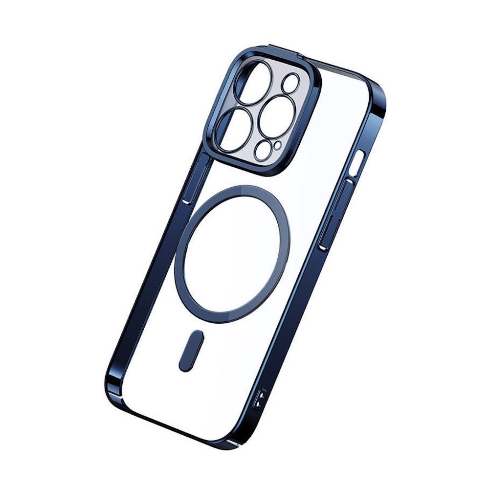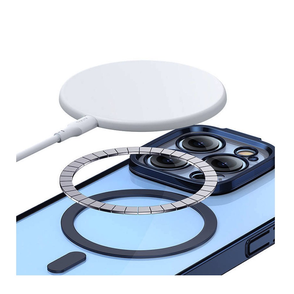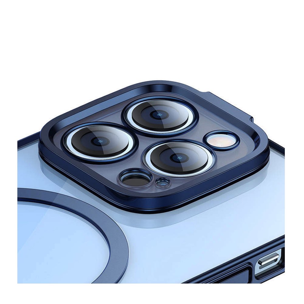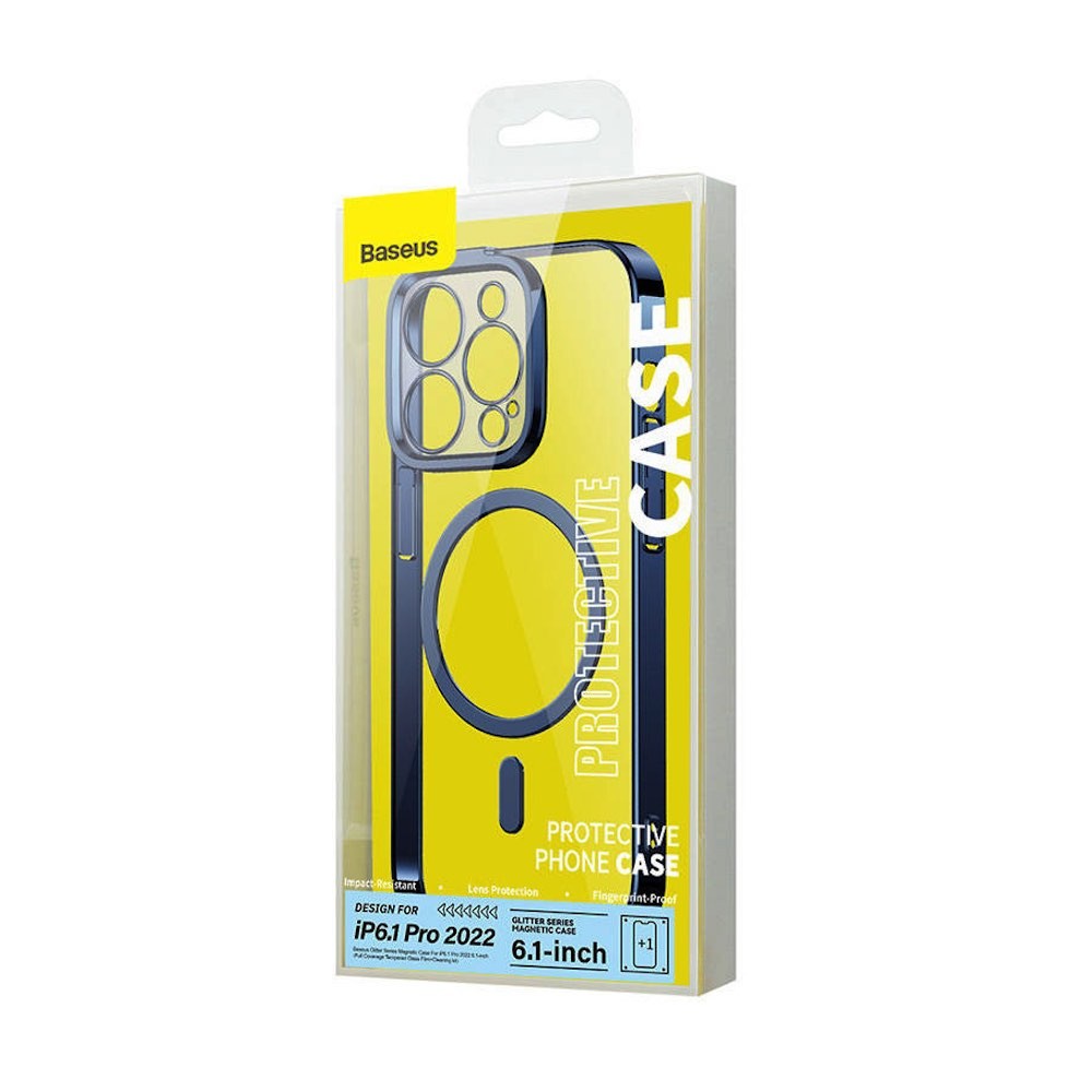 Baseus Glitter MagSafe Hybrid Protection Set - хибриден удароустойчив кейс с MagSafe и стъклено защитно покритие за дисплея на iPhone 14 Pro (син-прозрачен)