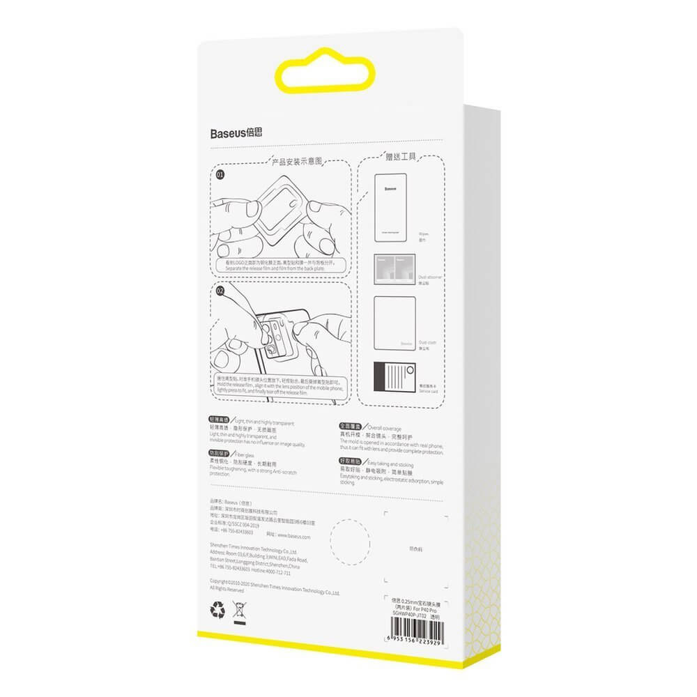 Baseus Lens Tempered Glass Protector - предпазно стъклено покритие за камерата на Huawei P40 (прозрачни) (2 броя)