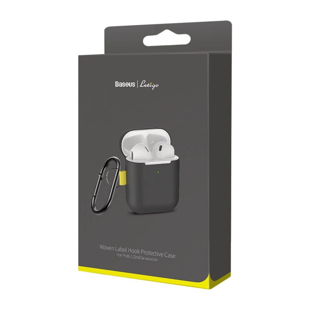 Baseus Lets Go Silica Gel Case - силиконов калъф с карабинер за Apple Airpods & Apple Airpods 2 (черен)