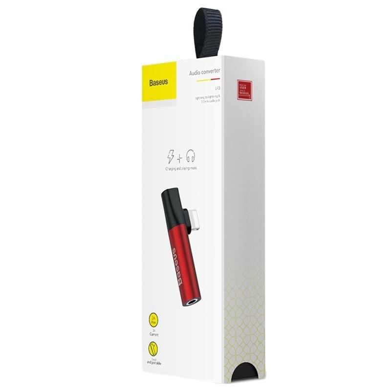 Baseus Lightning & Audio Adapter - Lightning адаптер с Lightning порт и 3.5 мм аудио вход за устройства с Lightning порт (червен)