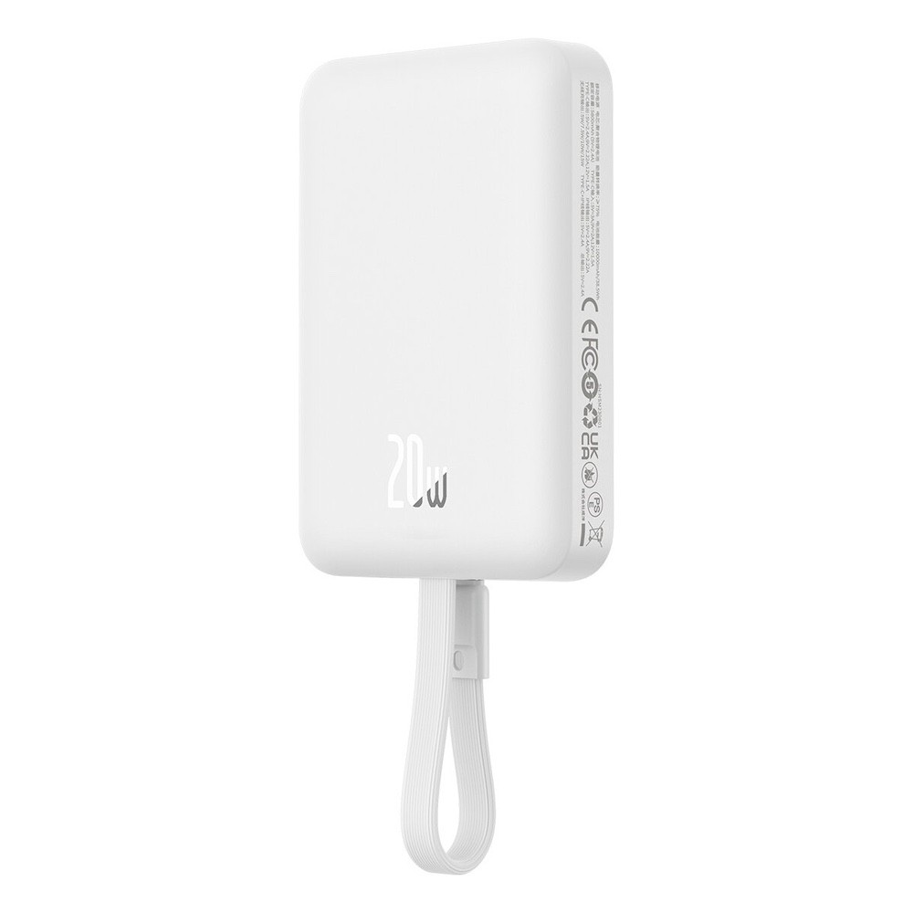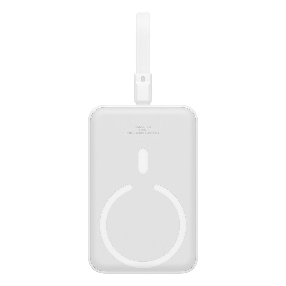 Baseus Magnetic Mini Wireless Charging Power Bank 10000 mAh 20W (P10022109223-00) - преносима външна батерия с вграден Ligtning кабел и безжично зареждане с MagSafe (бял)