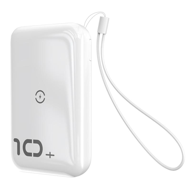 Baseus Mini S Bracket 10W Wireless Charger 10000mAh - външна батерия USB и USB-C изходи и с технология за безжично зареждане (бял)