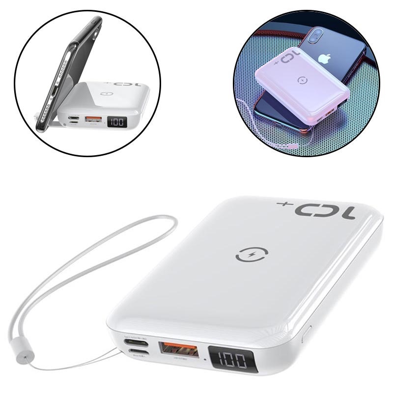 - Независимо от многобройните си функции и огромния капацитет от 10000mAh, батерията разполага с мини и ултра-преносим дизайн - идеален за ежедневна употреба и пътувания