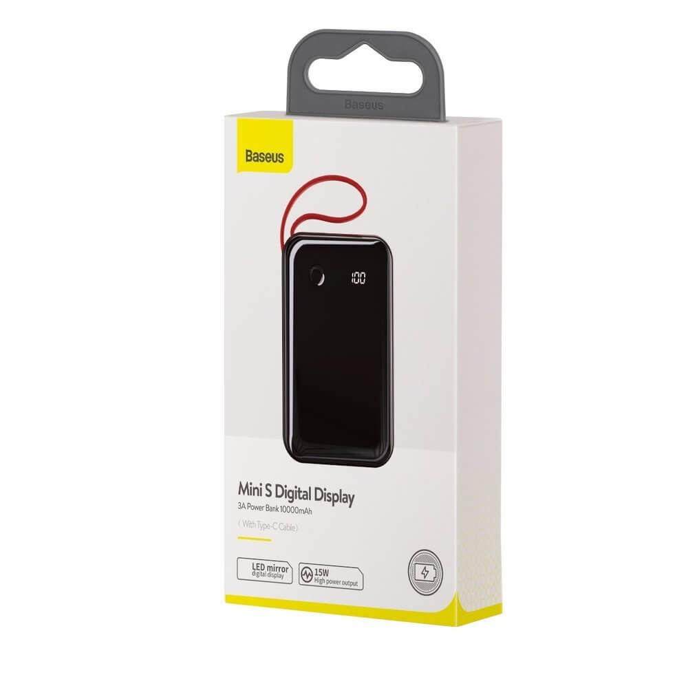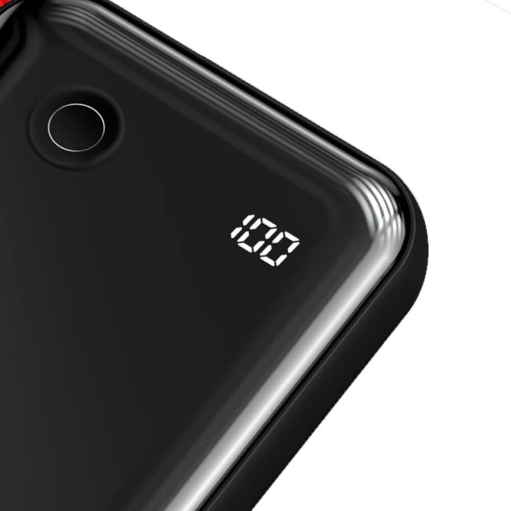 Baseus Mini S Digital Display Power Bank 15W Wireless Charger 10000mAh (PPXF-A09) - външна батерия 10000 mAh с вграден USB-C кабел и USB-C, USB-A и Lightning портове (черен-червен)