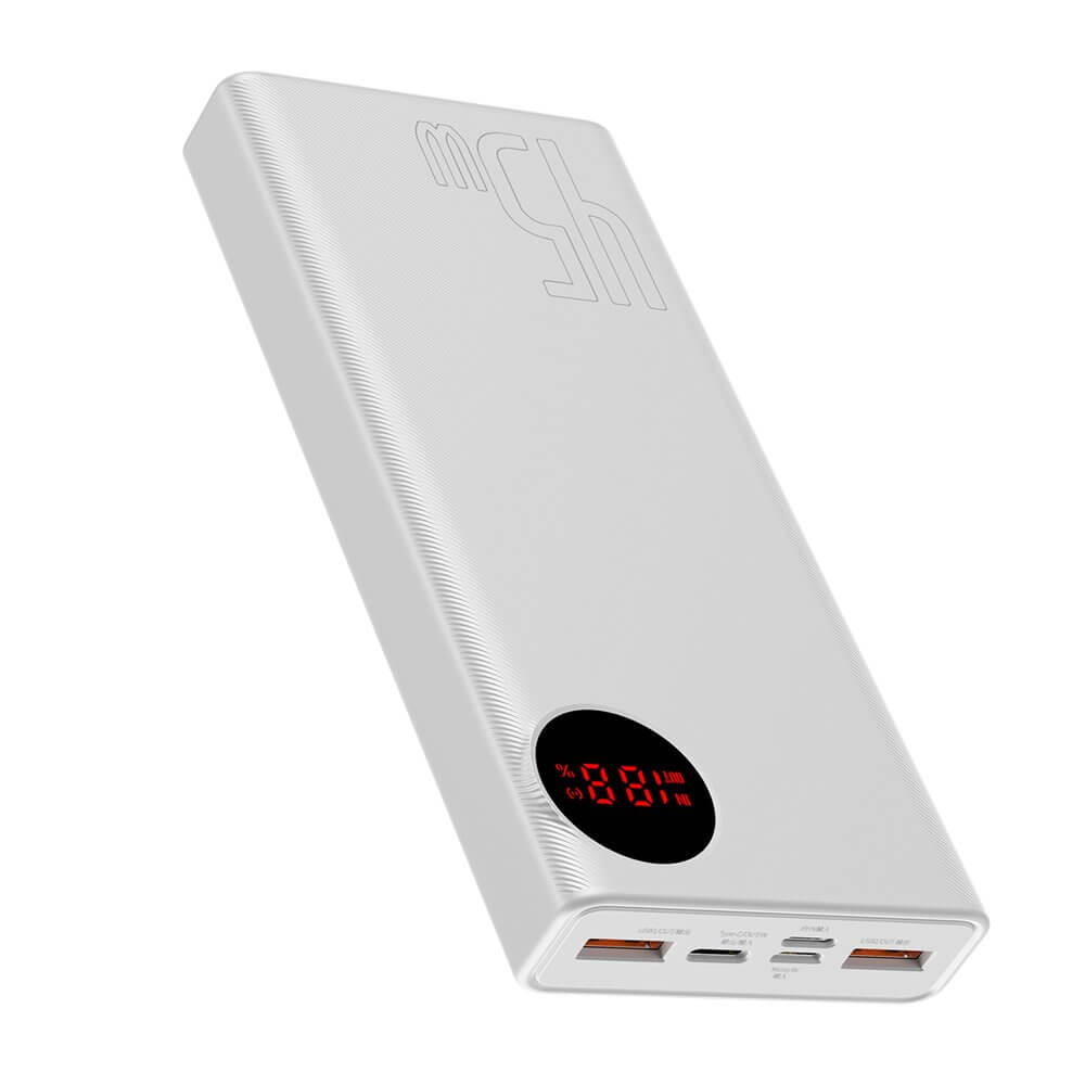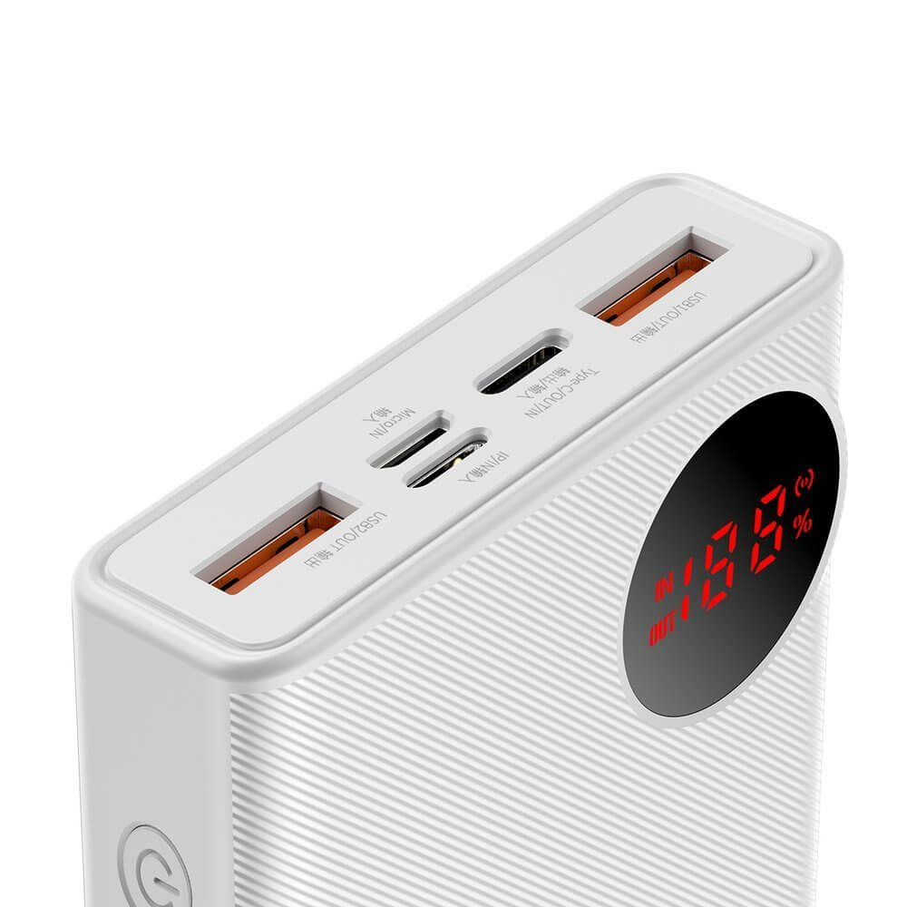 Baseus Mulight Power Bank with Digital Display Quick Charge 45W (PPMY-A01) - външна батерия 20000 mAh с 2xUSB-A и USB-C изходи за зареждане на смартфони и таблети (бял)