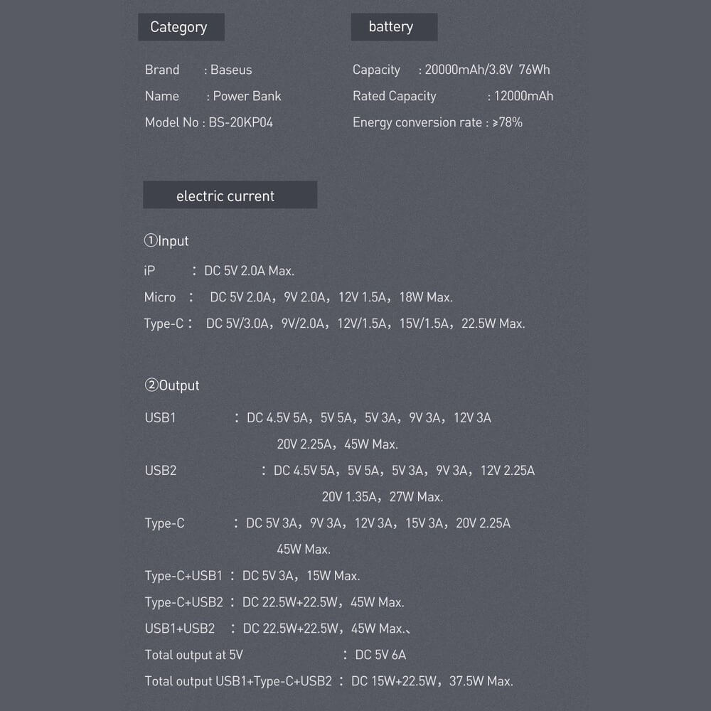 - Капацитет: 20000mAh (3.8V/76Wh)