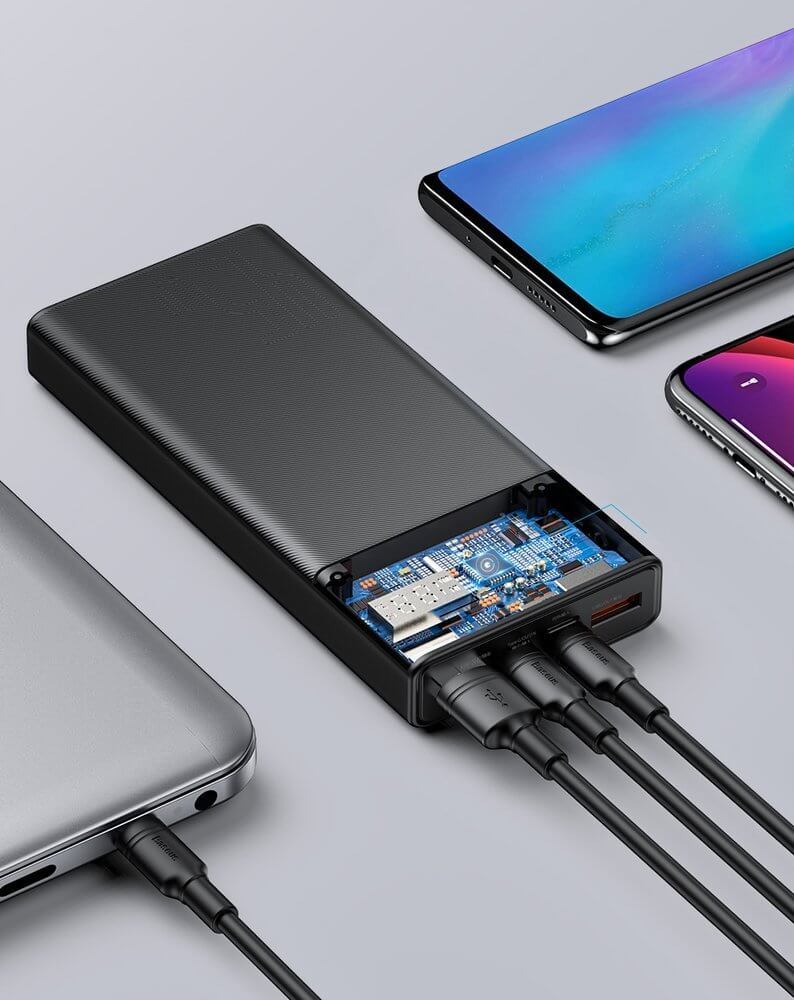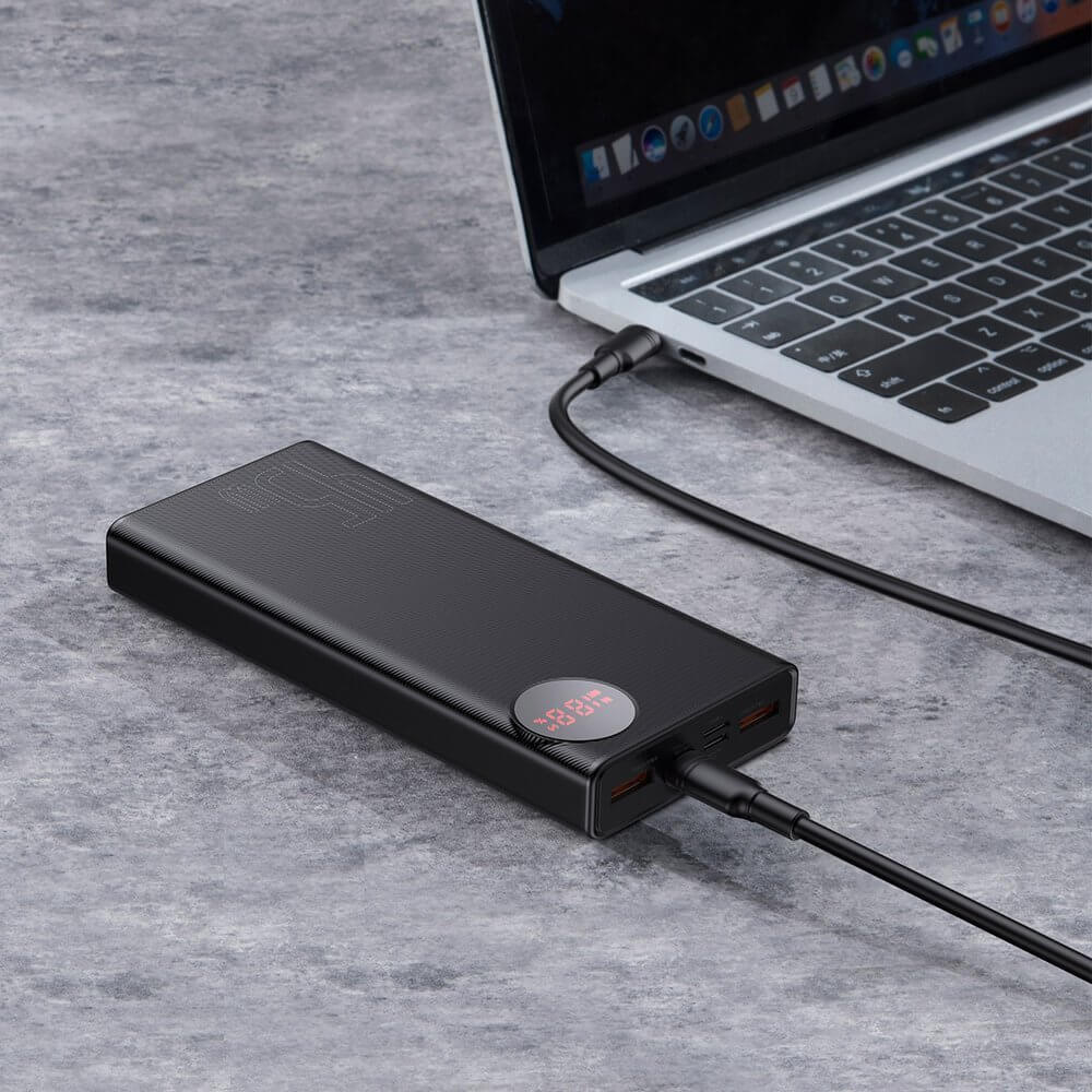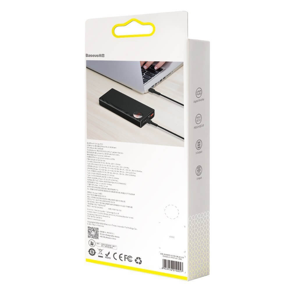 Baseus Mulight Power Bank with Digital Display Quick Charge 45W (PPMY-A01) - външна батерия 20000 mAh с 2xUSB-A и USB-C изходи за зареждане на смартфони и таблети (черен)