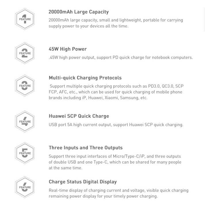 - Модел: Mulight Power Bank with Digital Display Quick Charge 45W
