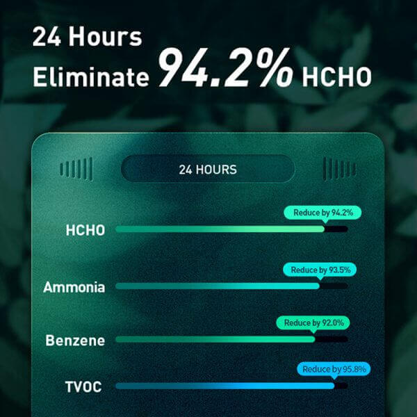 - За 24 часа работа, освежителят елиминира до 94.2% от формалдехида