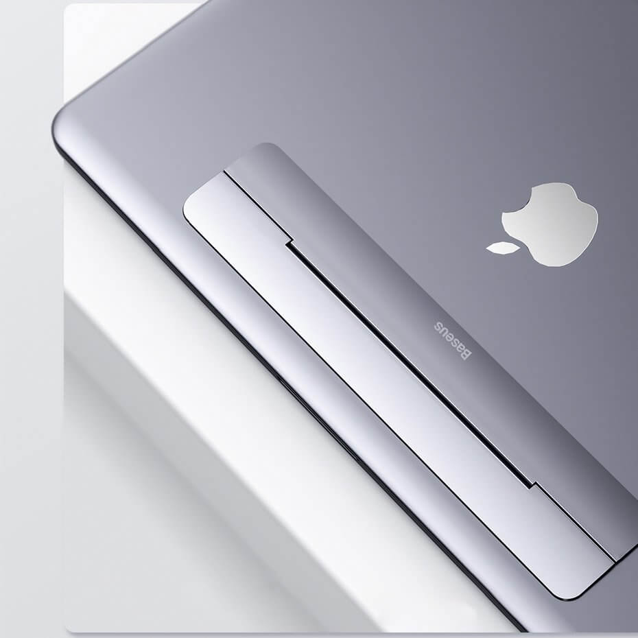 Baseus Papery Self-Adhesive Aluminum Laptop Stand - сгъавема, залепяща се към вашия компютър поставка за MacBook и лаптопи (тъмносив)