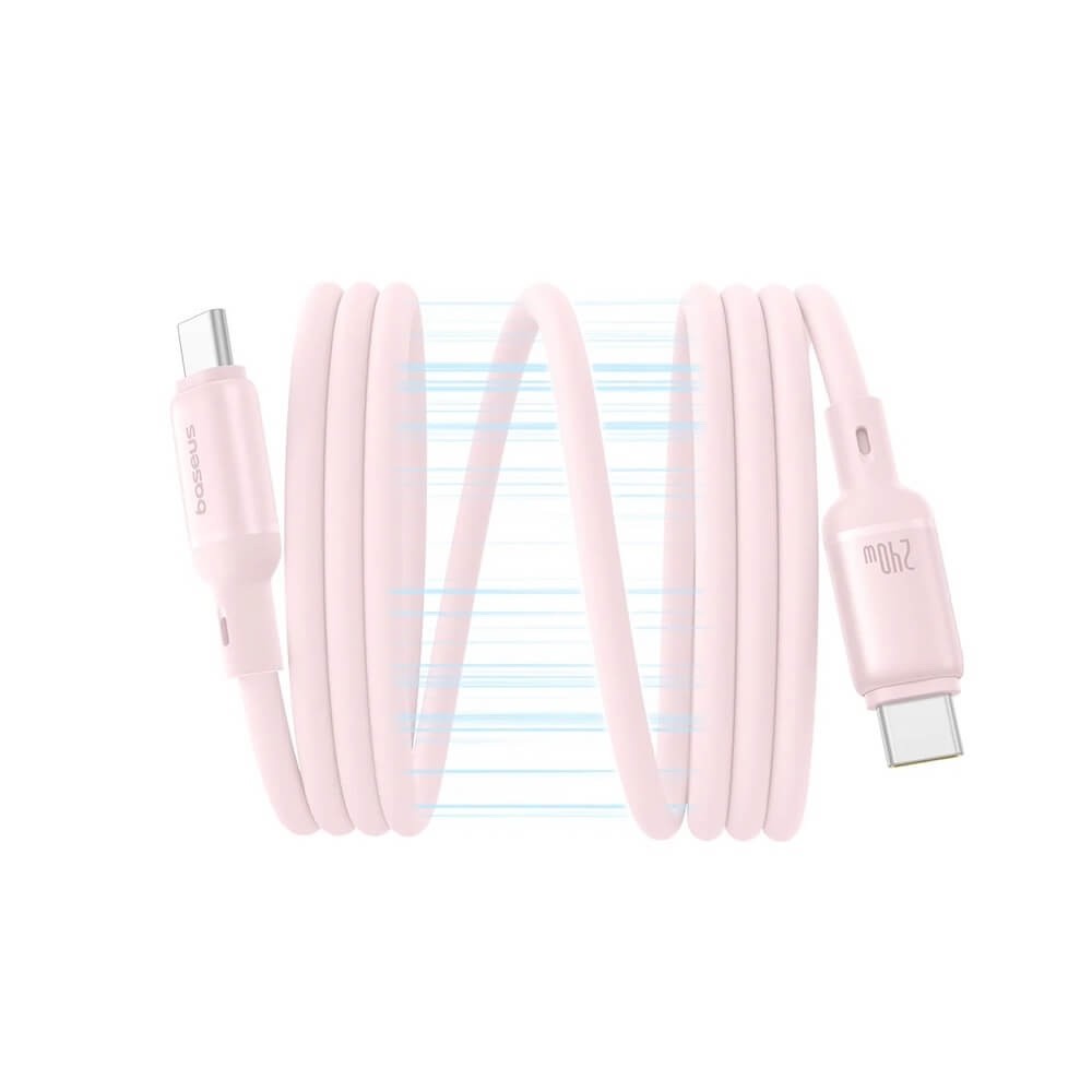 Baseus PicoGo Magnetic Liquid Silicone USB-C to USB-C Cable 240W - кабел с вграден магнитен органайзер с бързо зареждане за устройства с USB-C порт (100 см) (розов)
