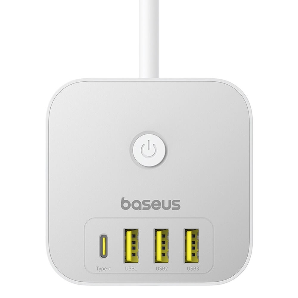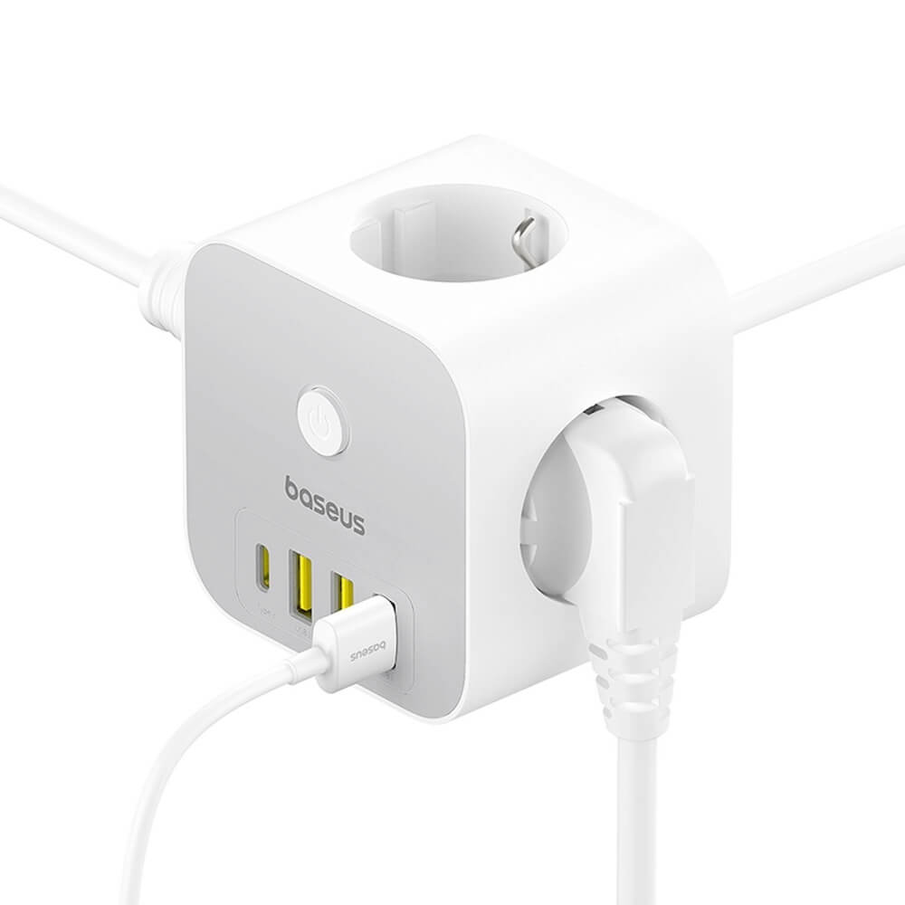 Baseus PowerCombo Wall Power Strip With USB-C Hub 20W - разклонител с 3 изхода и вградени 1хUSB-C и 3хUSB-A изхода за мобилни устройства (бял)