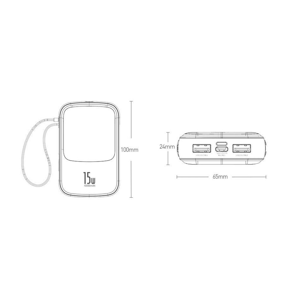Открийте новите възможности за зареждане с външната батерия Baseus Qpow Digital Display Power bank с вграден USB-C кабел. Тази мощна батерия предлага три отделни порта и е готова да зарежда вашите устройства с бързина и стабилност.