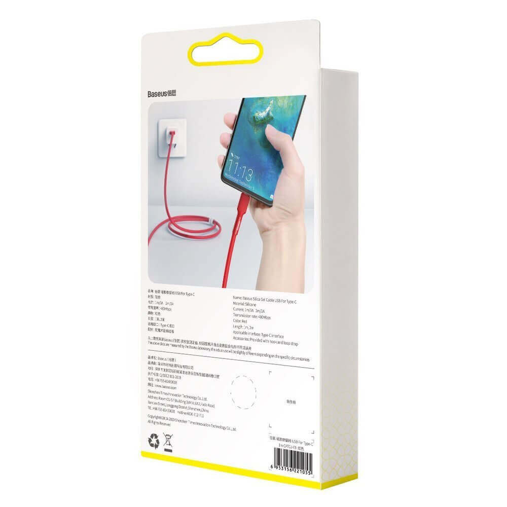 Baseus Silica Gel USB-C Cable - USB-C кабел за устройства с USB-C порт (200 см) (червен)