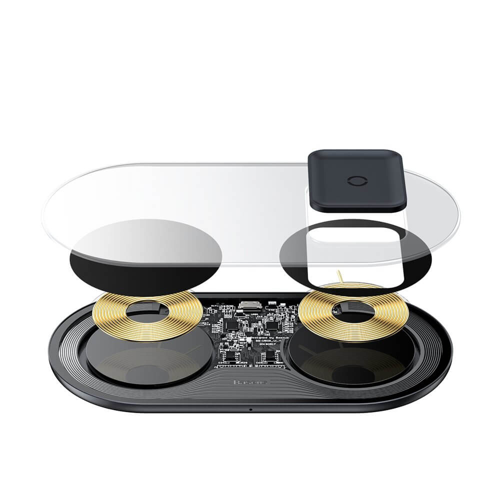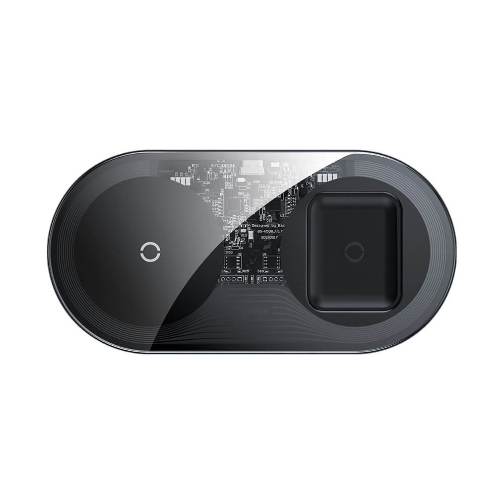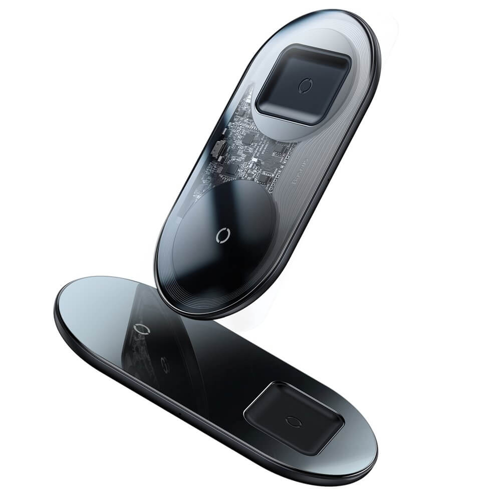 Baseus Simple 2in1 Wireless Charger (WXJK-A01) - двойна поставка (пад) с Fast Charge технология за безжично зареждане за Qi съвместими устройства и Apple Airpods (прозрачен)