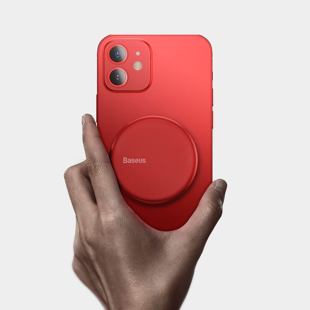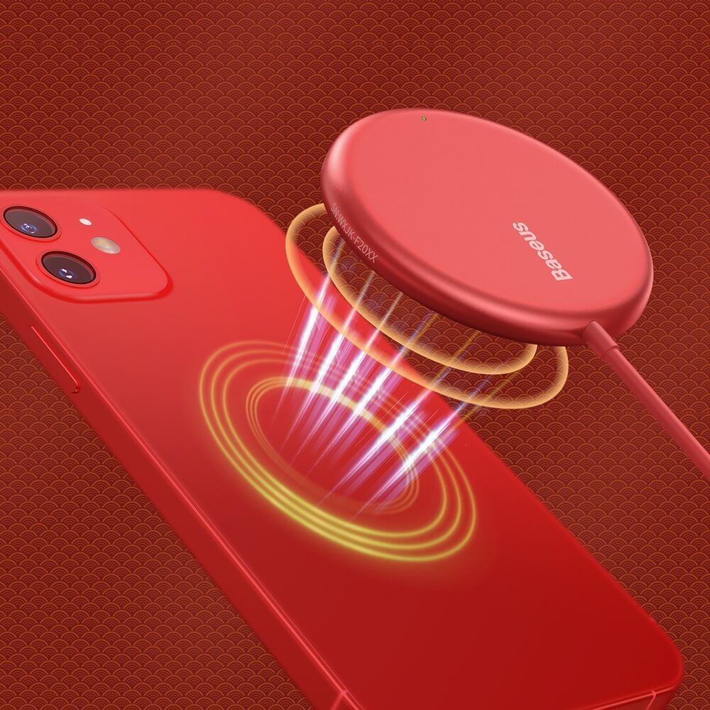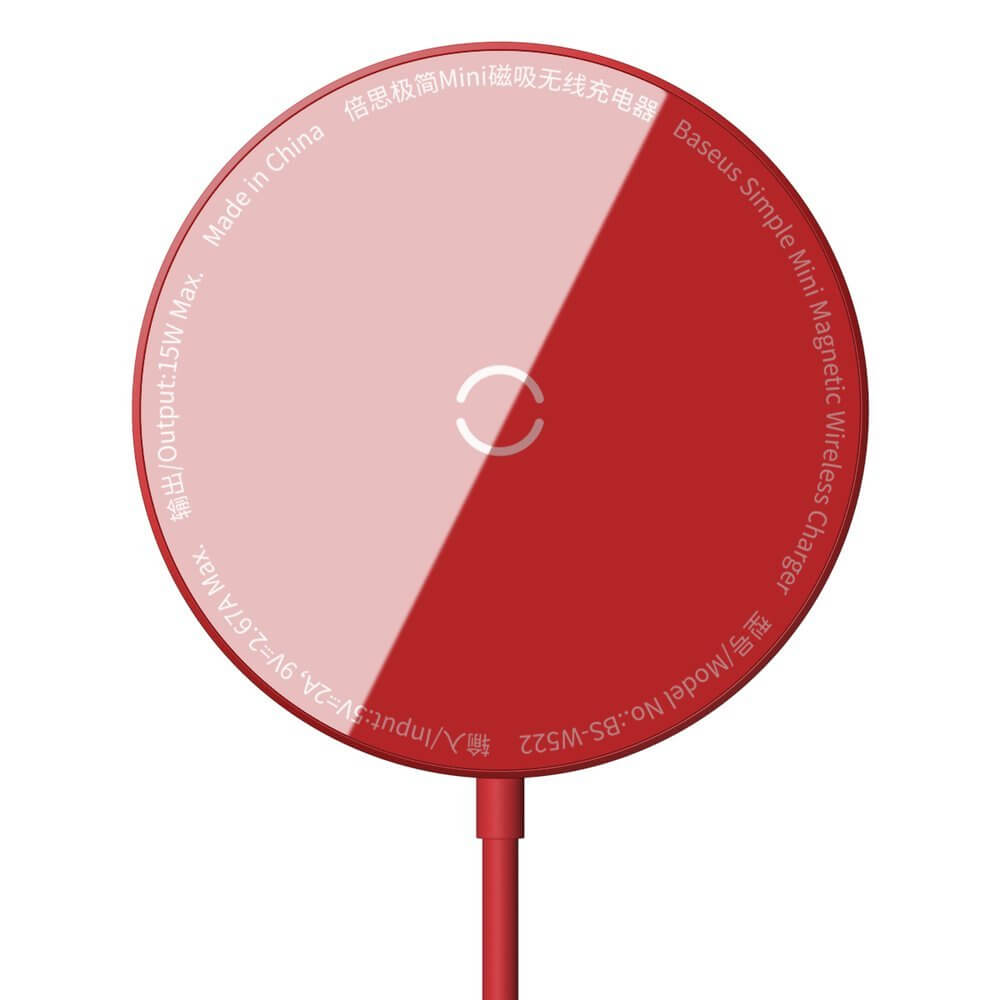Baseus Simple Mini Magnetic Wireless Charger (WXJK-H09) - поставка (пад) за безжично зареждане за iPhone с Magsafe и Qi съвместими устройства (червен)