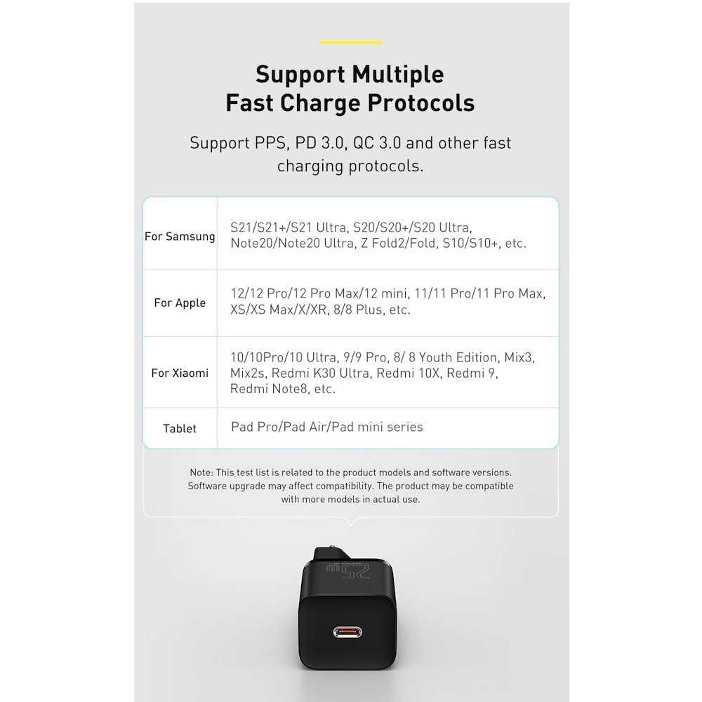 - 1 x Baseus Super Si USB-C PD Wall Charger 25W - 1 x Baseus USB-C към USB-C кабел (100 см)