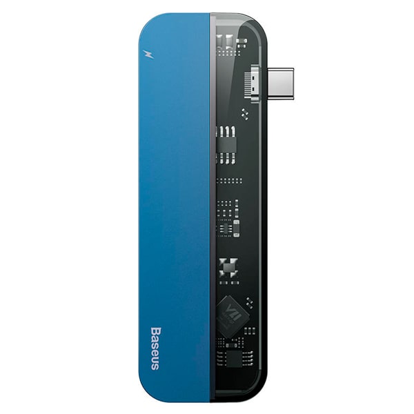 Baseus Transparent Series USB-C Hub CAHUB-TD03 - мултифункционален хъб за свързване на допълнителна периферия за устройства с USB-C (син)
