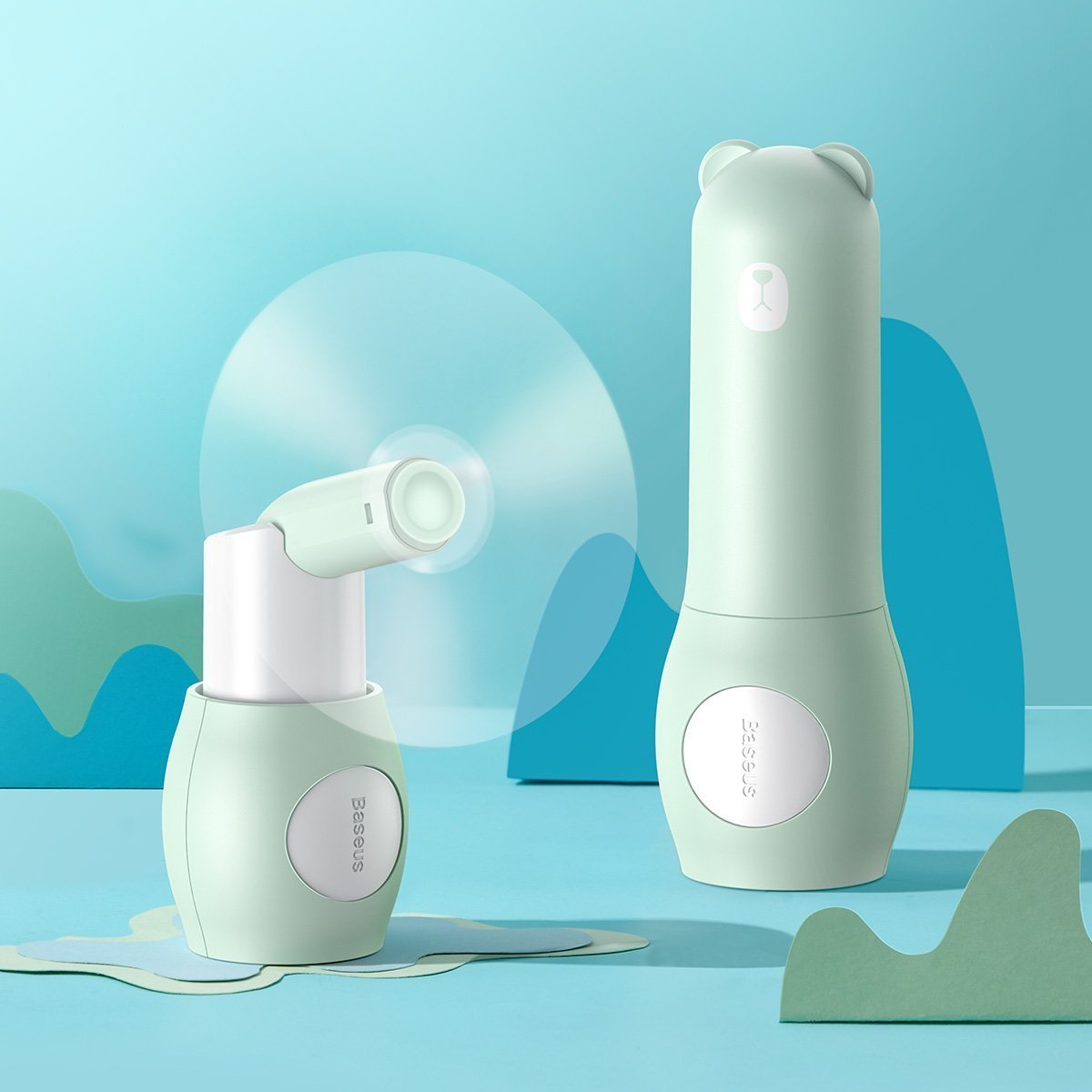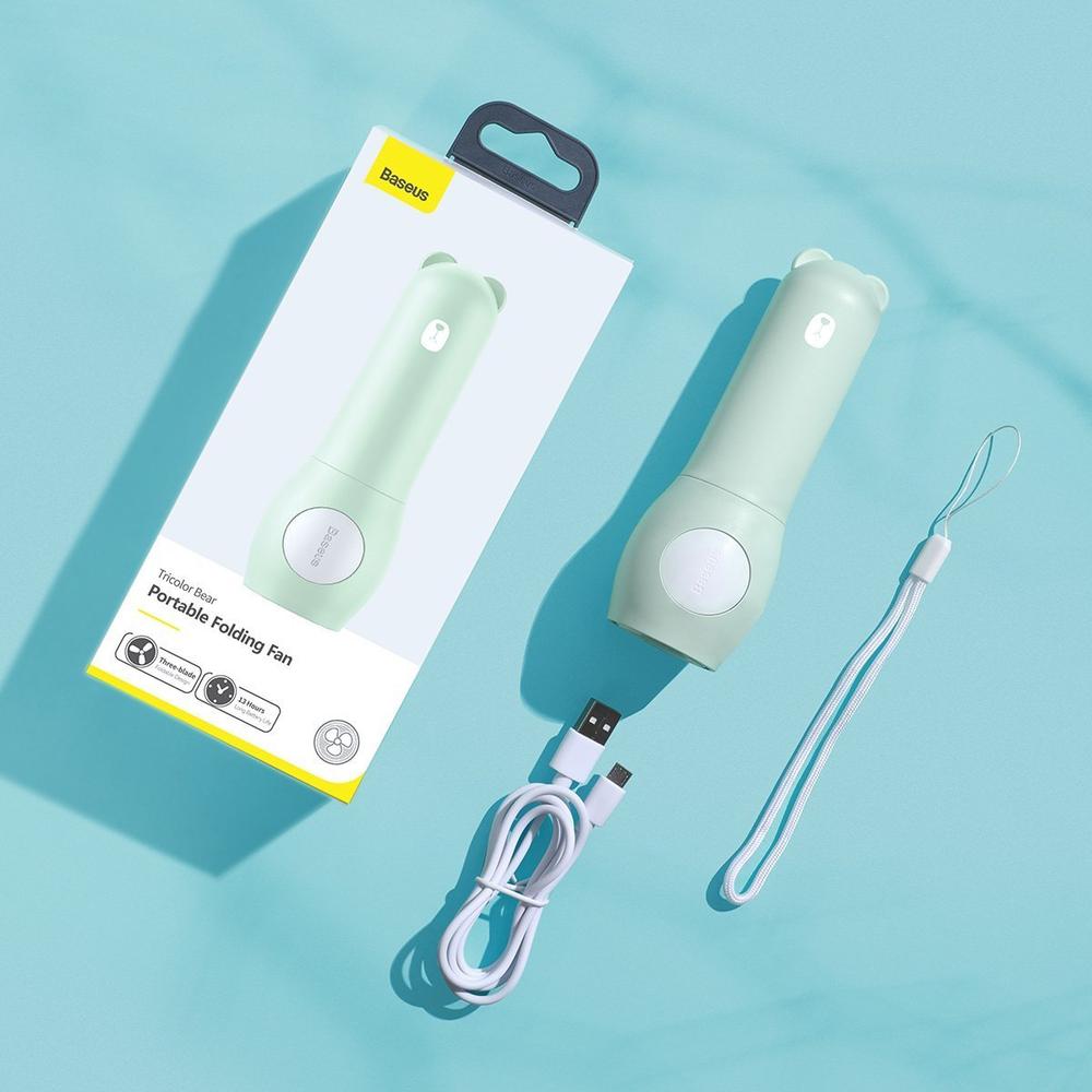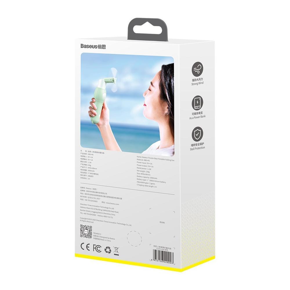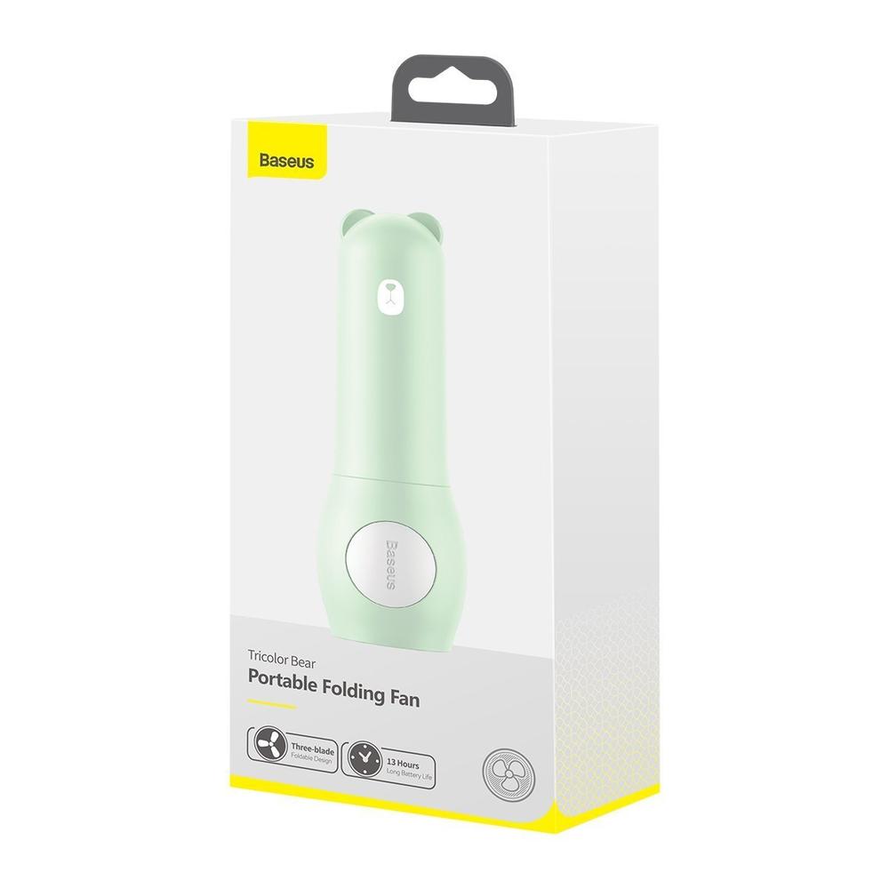 Baseus Tricolor Bear Portable Folding Fan - сгъваем мини вентилатор с външна батерия (зелен)