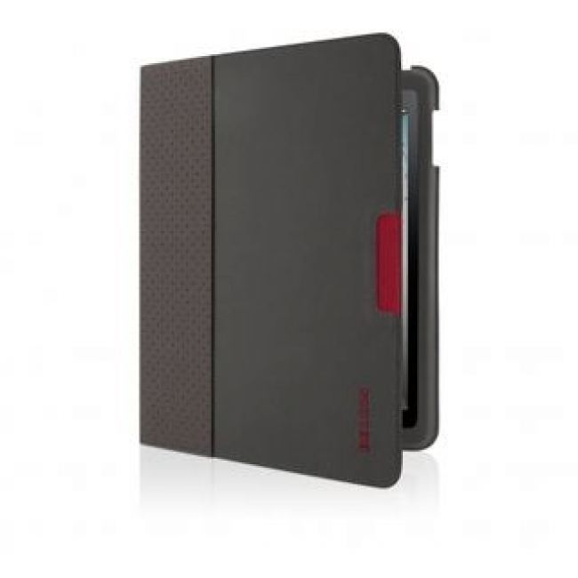 Belkin Slim Folio - кожен кейс и поставка за iPad 2 (черен-червен)