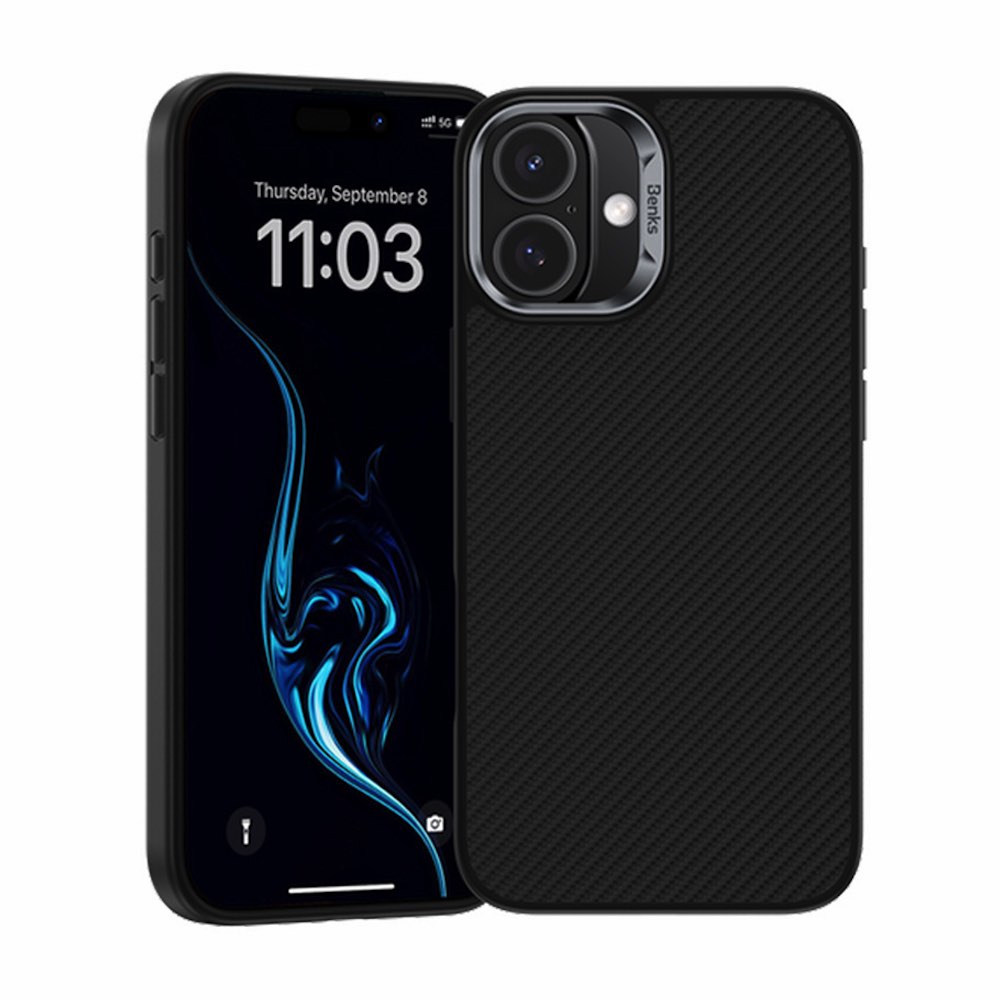 Benks Armor Air Kevlar Metal Frame Case 600D - кевларен кейс с MagSafe за iPhone 16 Plus (черен)