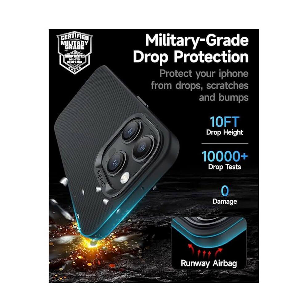 - • Хибриден удароустойчив кейс, изработен от силиконова (TPU) странична част и 100% арамидни 600D влакна (кевлар), използвани и в самолетостроенето