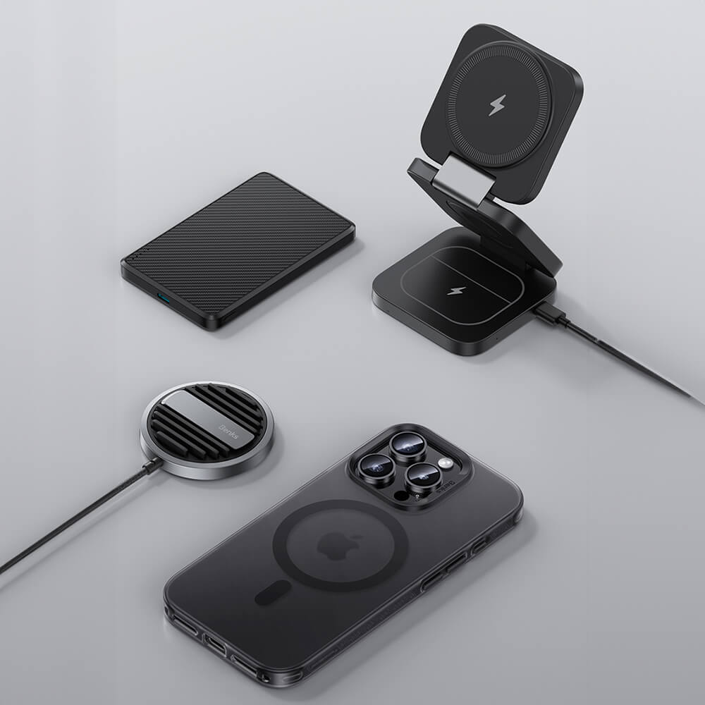 - • Кейсът е снабден с магнит, благодарение на който е съвместим с MagSafe аксесоари. Това е изцяло нов стандарт на Apple за бързо и лесно свързване на аксесоари и безжични зарядни устройства