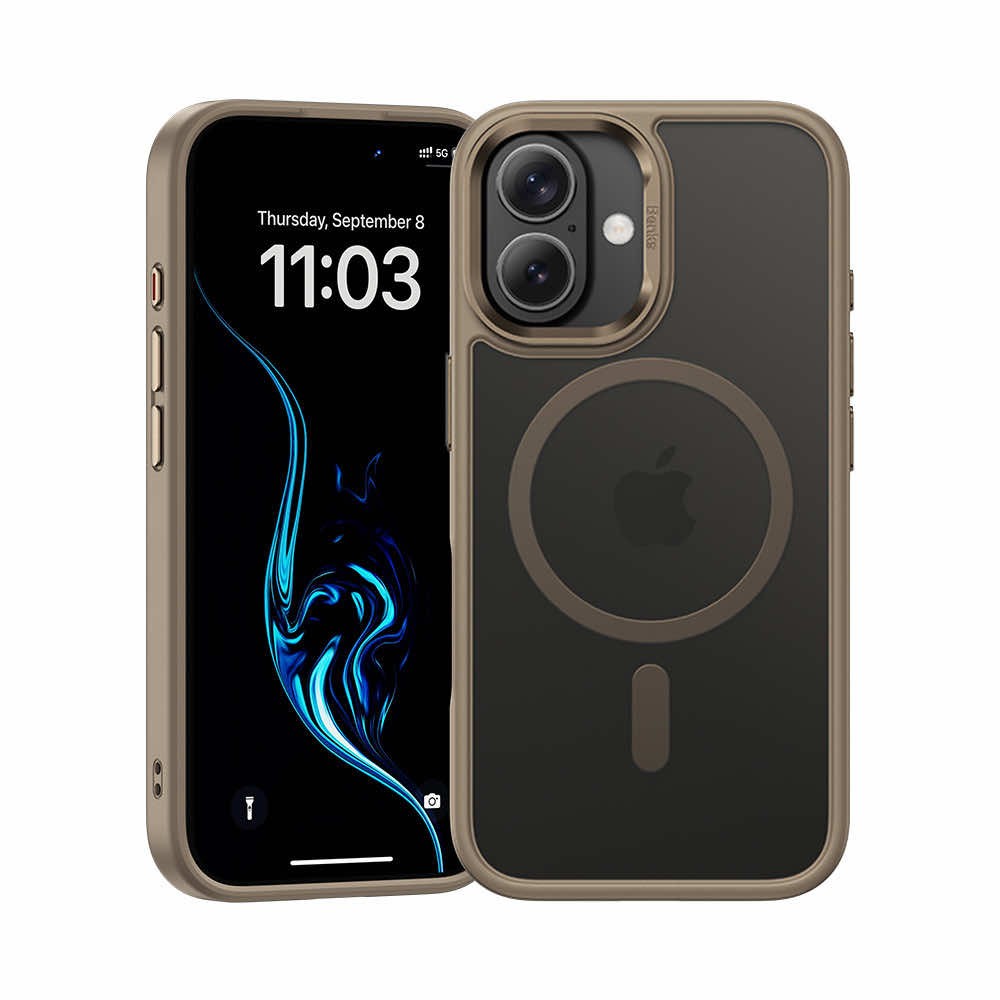 Benks Magnetic Mist Metal Frame Case - хибриден удароустойчив кейс с MagSafe за iPhone 16 (златист)