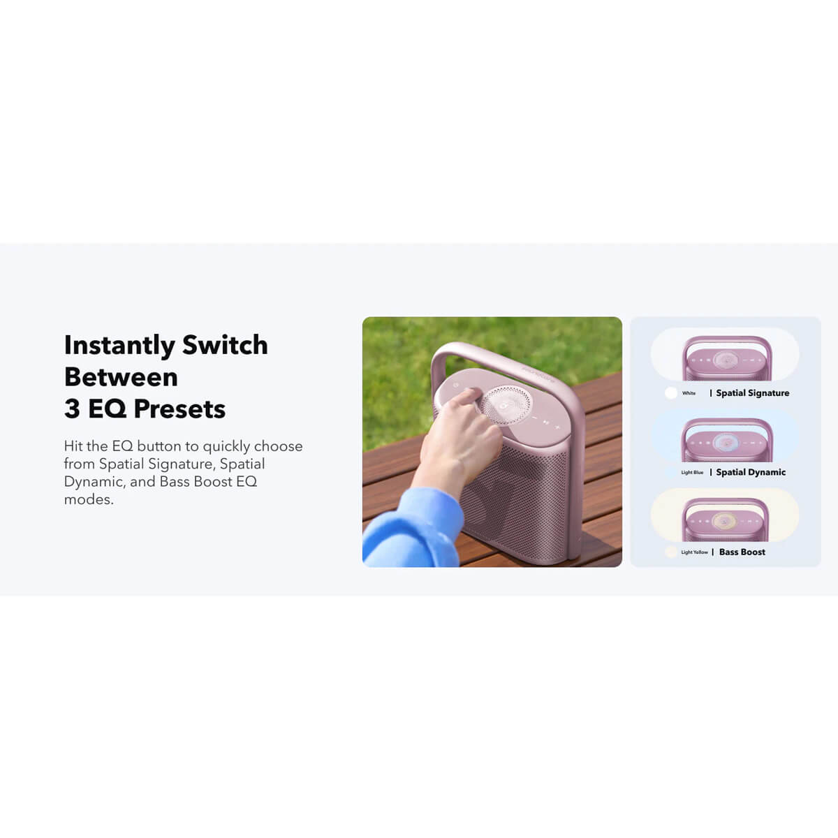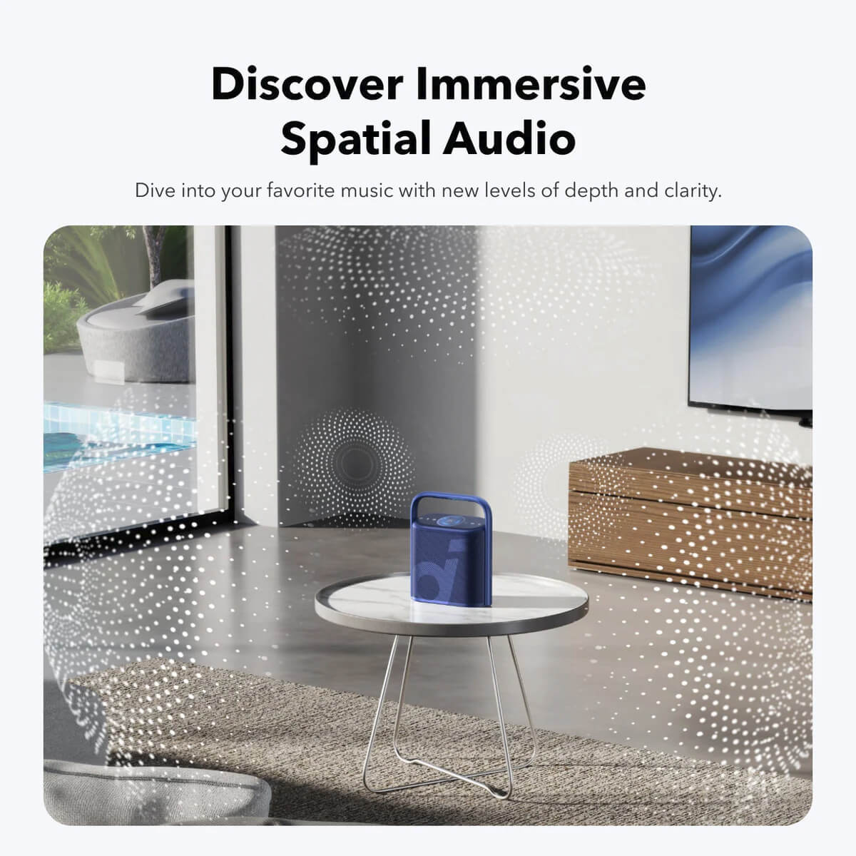 - Специалният алгоритъм soundcore трансформира стерео аудиото за изключително поглъщащо изживяване.