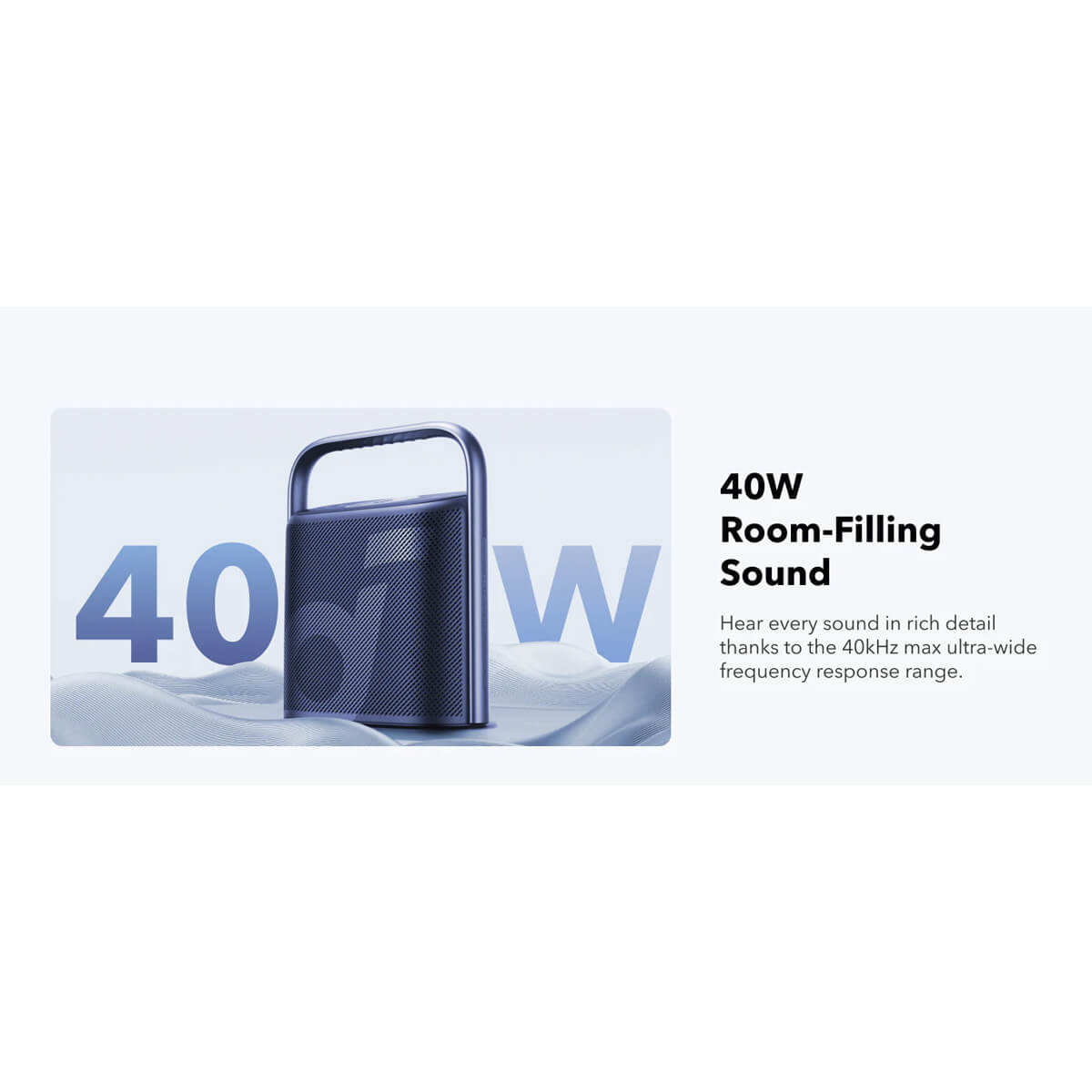 - С компактния дизайн на преносимата колонка Anker Motion X500 и мощния 40W стерео звук, можете да слушате по свой начин - където и да се намирате.