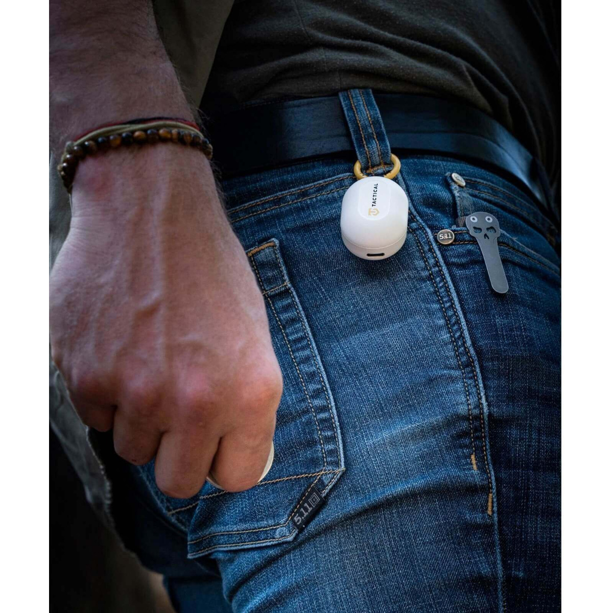 - Към кейса за зареждане в прикрепен и качествен карабинер, чрез който може да закачате слушалките на колан и др.