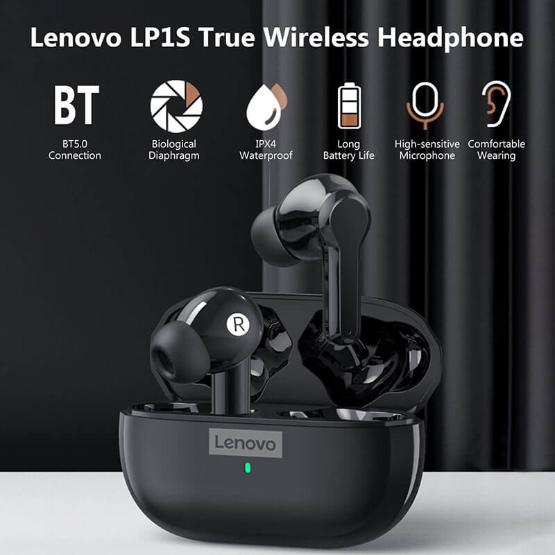 - В комплекта: 1 x Lenovo LP1S TWS, 1 х кейс за зареждане, 1 х кабел за зареждане на кейса, 2 х силиконови тапи - Всичко необходимо за вашето удобство.