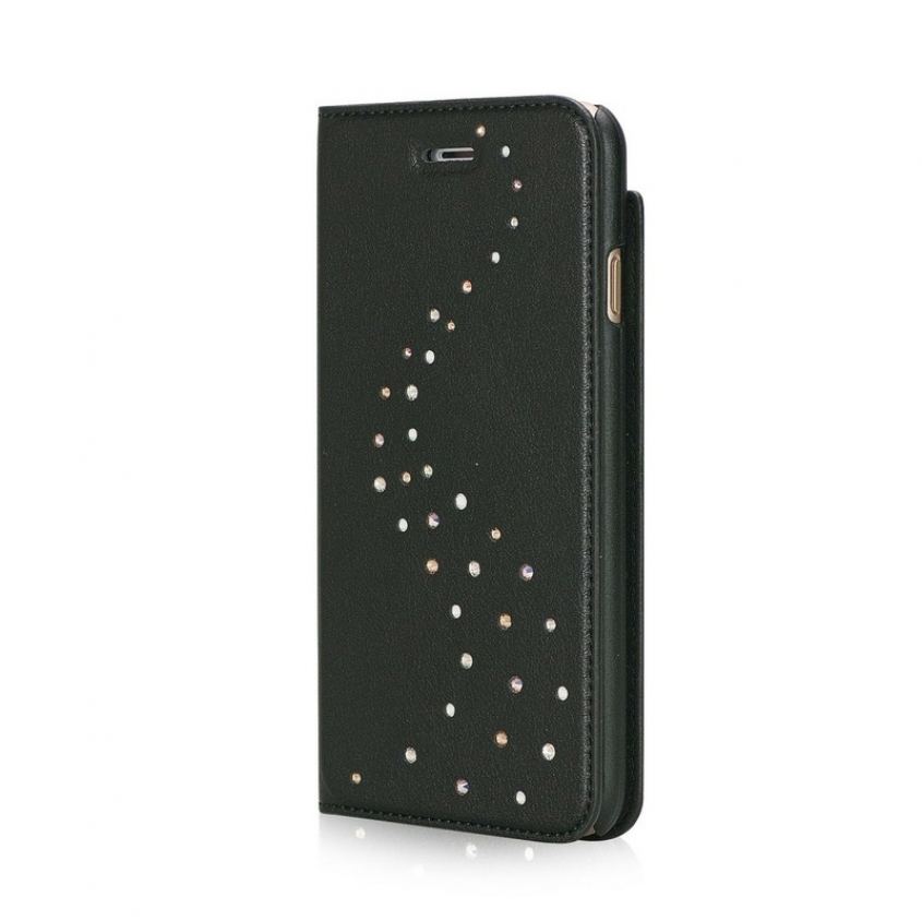 Bling My Thing Primo Milky Way Angel Tears - кожен калъф, тип портфейл с кристали Сваровски за iPhone SE 2020, iPhone 7, iPhone 8 (черен)