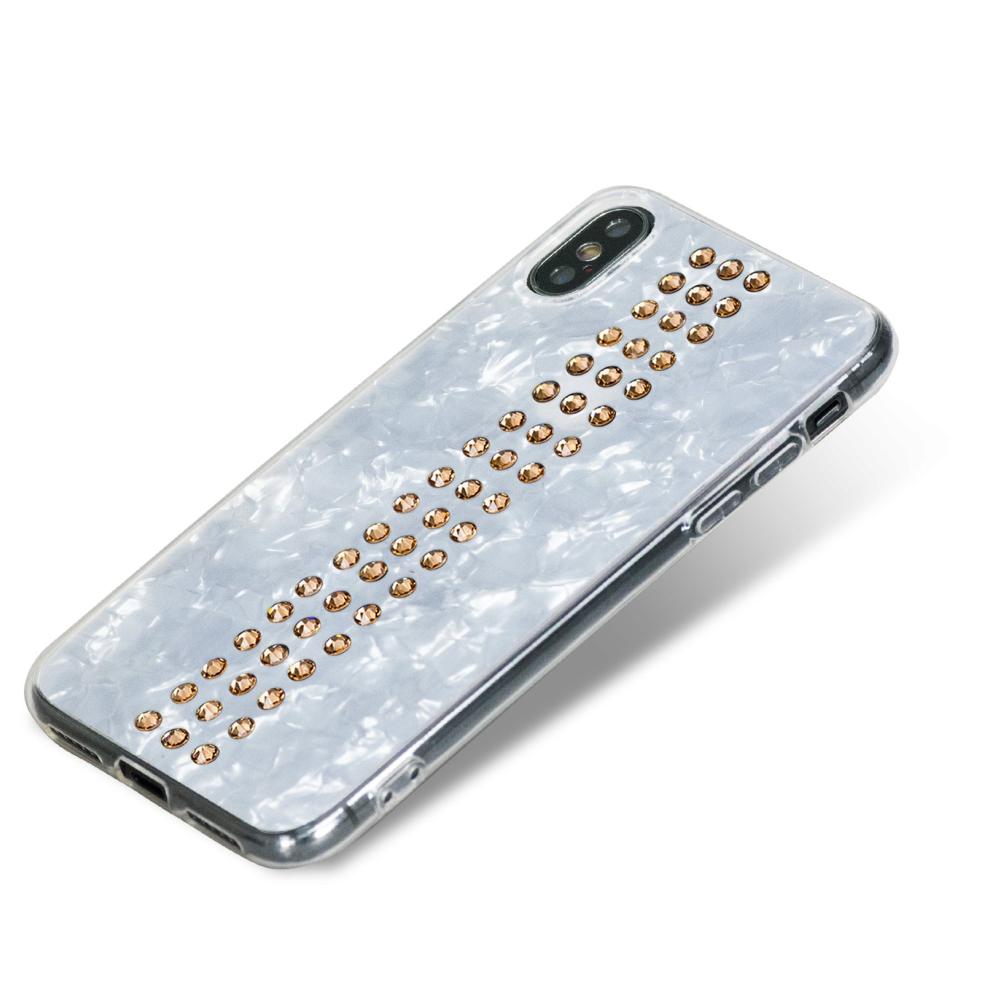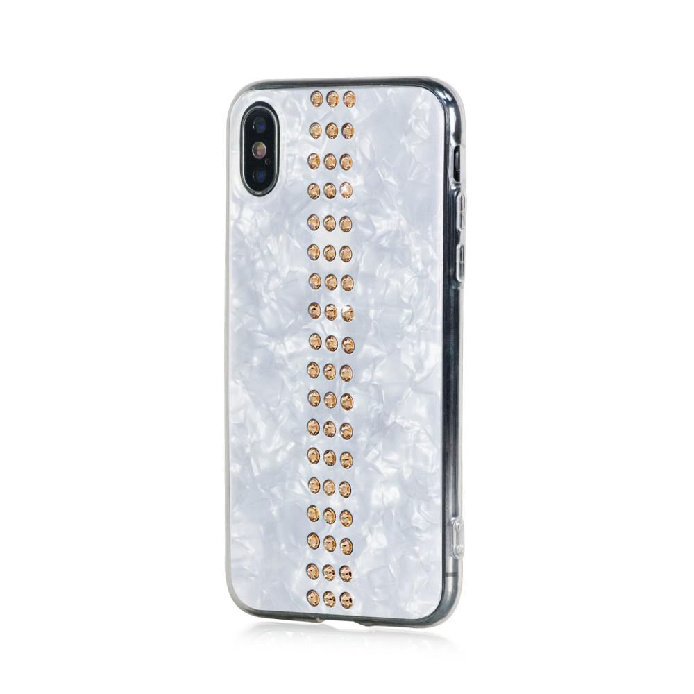 Bling My Thing Stripe TPU Gold Swarovski - силиконов (TPU) калъф с кристали Сваровски за iPhone XS, iPhone X (бял)