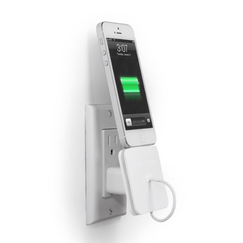 - Може да го използвате с оригиналното захранване за вашия iPhone или друго захранване с подобни размери и да го поставите на стената