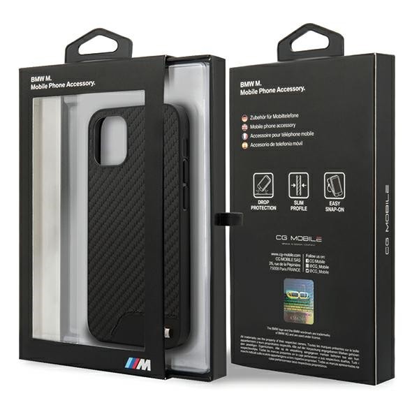 BMW M Collection PU Carbon Hard Case - кожен кейс за iPhone 12 mini (черен)