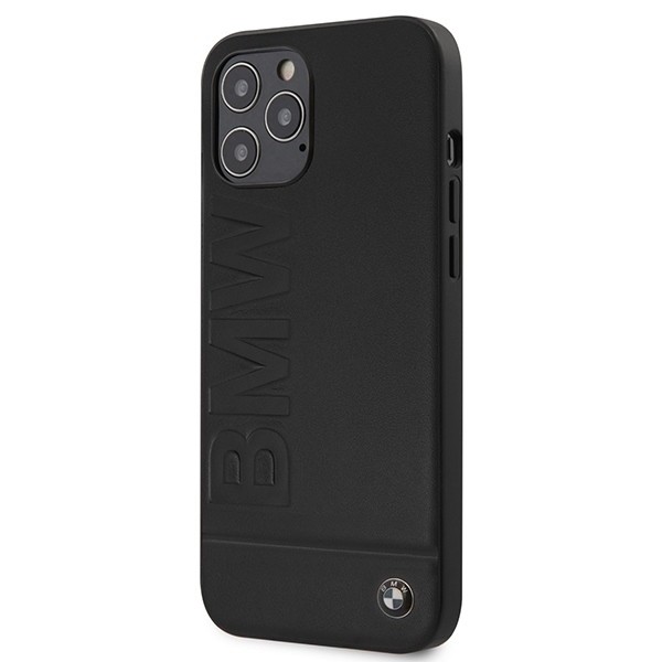 BMW Signature Logo Imprint Hard Case - кожен кейс (естествена кожа) за iPhone 12 Pro Max (черен)