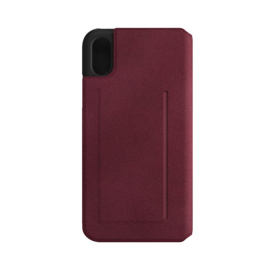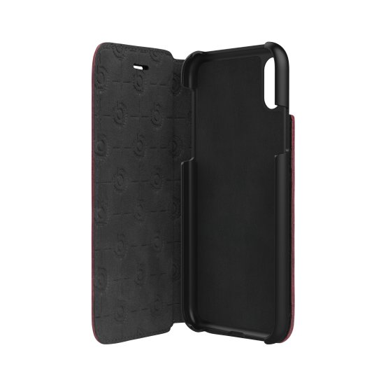 Bugatti Parigi Booklet Case - хоризонтален велурен калъф, тип портфейл за iPhone XS, iPhone X (червен)
