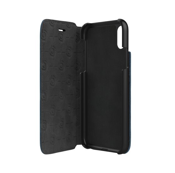 Bugatti Parigi Booklet Case - хоризонтален велурен калъф, тип портфейл за iPhone XS, iPhone X (син)