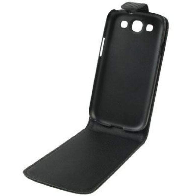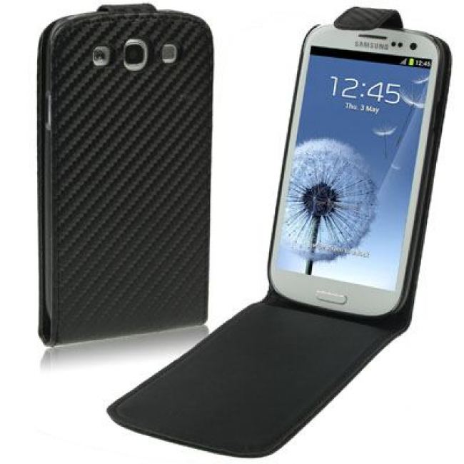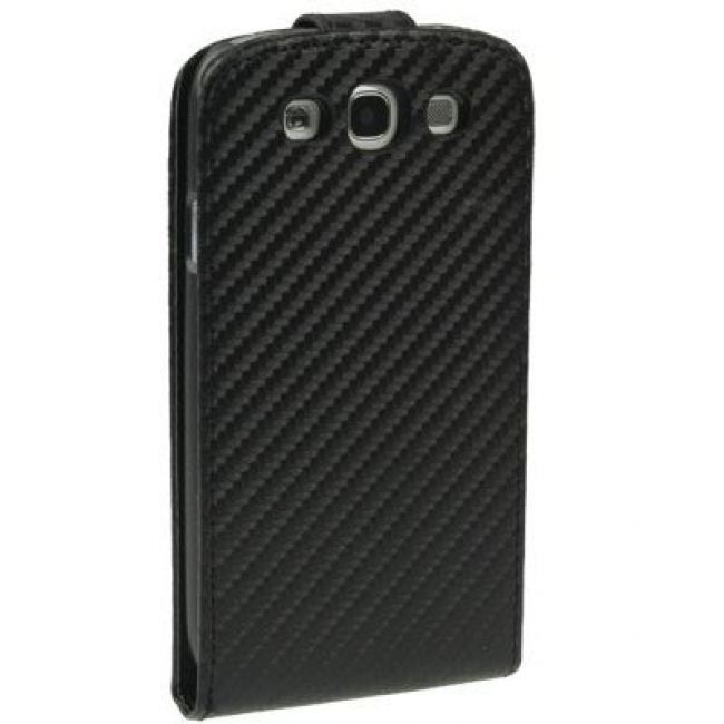 Carbon Vertical Flip Cover S3 - кожен калъф за Samsung Galaxy S3 i9300 (черен)
