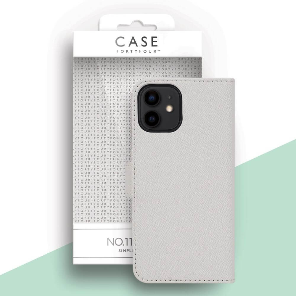 Case FortyFour No.11 Case - кожен калъф с поставка за iPhone 12 mini (бял)