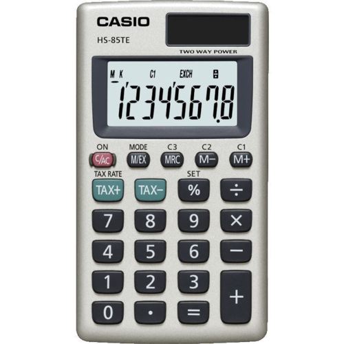 Casio HS85TE 8 Digit Calculator - джобен калкулатор с двойно захранване (сив)