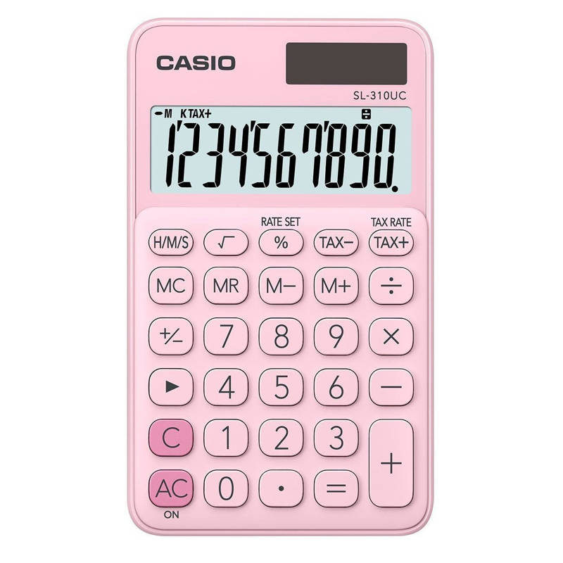 Casio SL310UC-PK 10 Digit Calculator - джобен калкулатор с двойно захранване (розов)