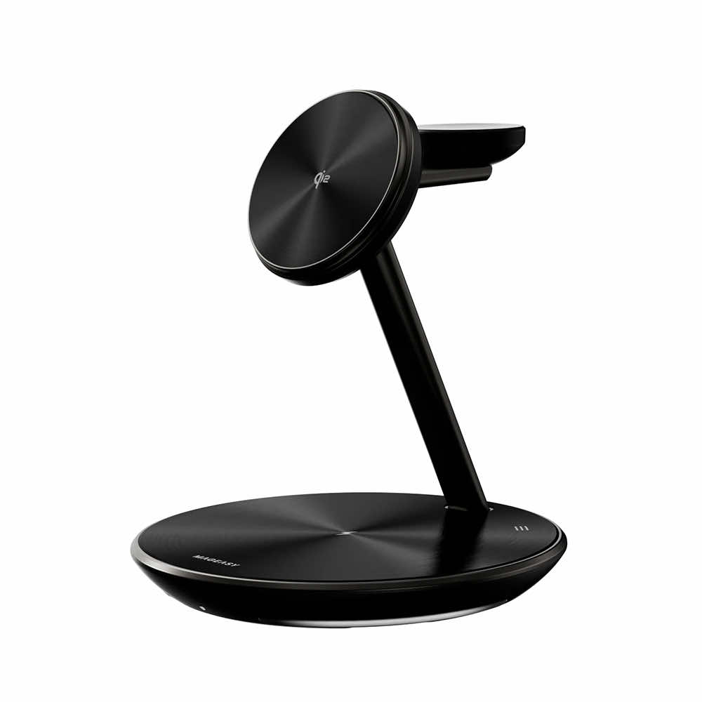 - Многофункционална поставка за зареждане на устройства с MagSafe или Qi2, Apple Watch, AirPods, а също така, има възможност и за жично зареждане. Това я прави изключително универсална.