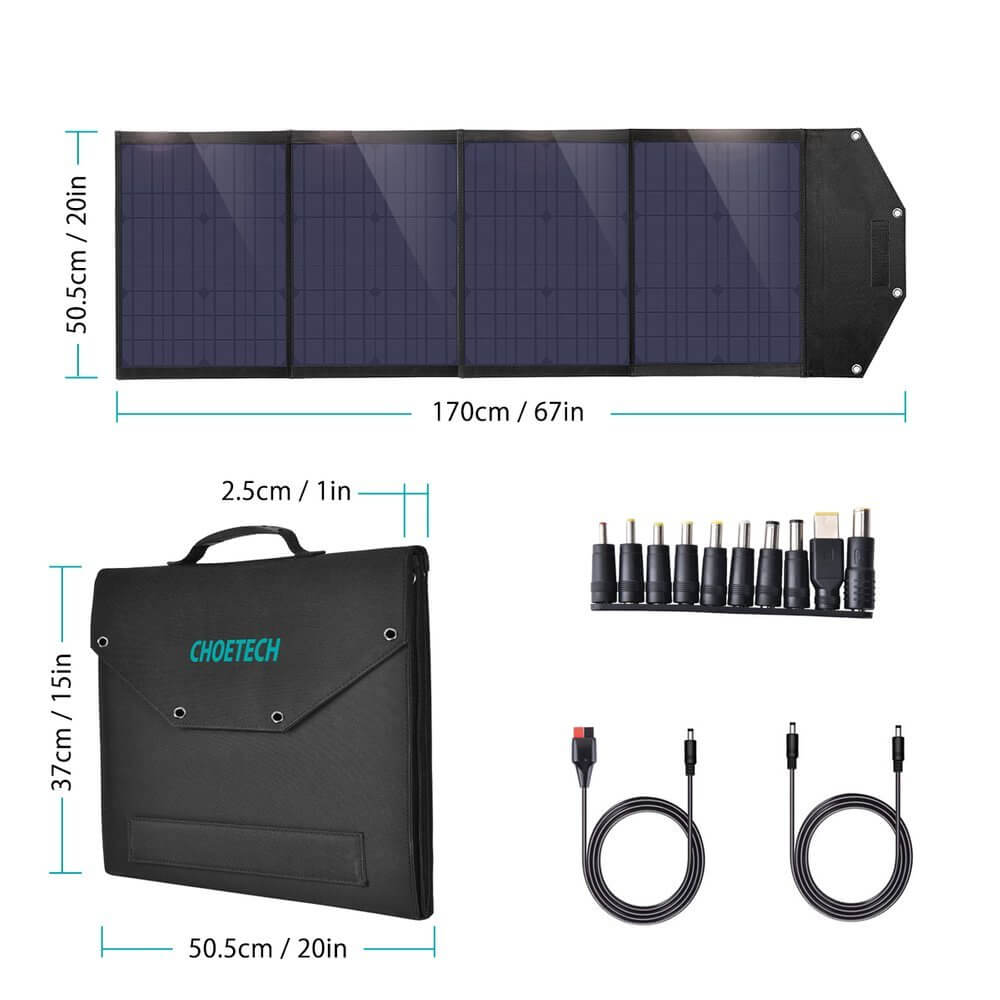 Choetech Foldable Photovoltaic Solar Panel Quick Charge PD 100W - сгъваем соларен панел зареждащ директно вашето устройство от слънцето с DC порт, двва 2xUSB-A и USB-C портове (сив)
