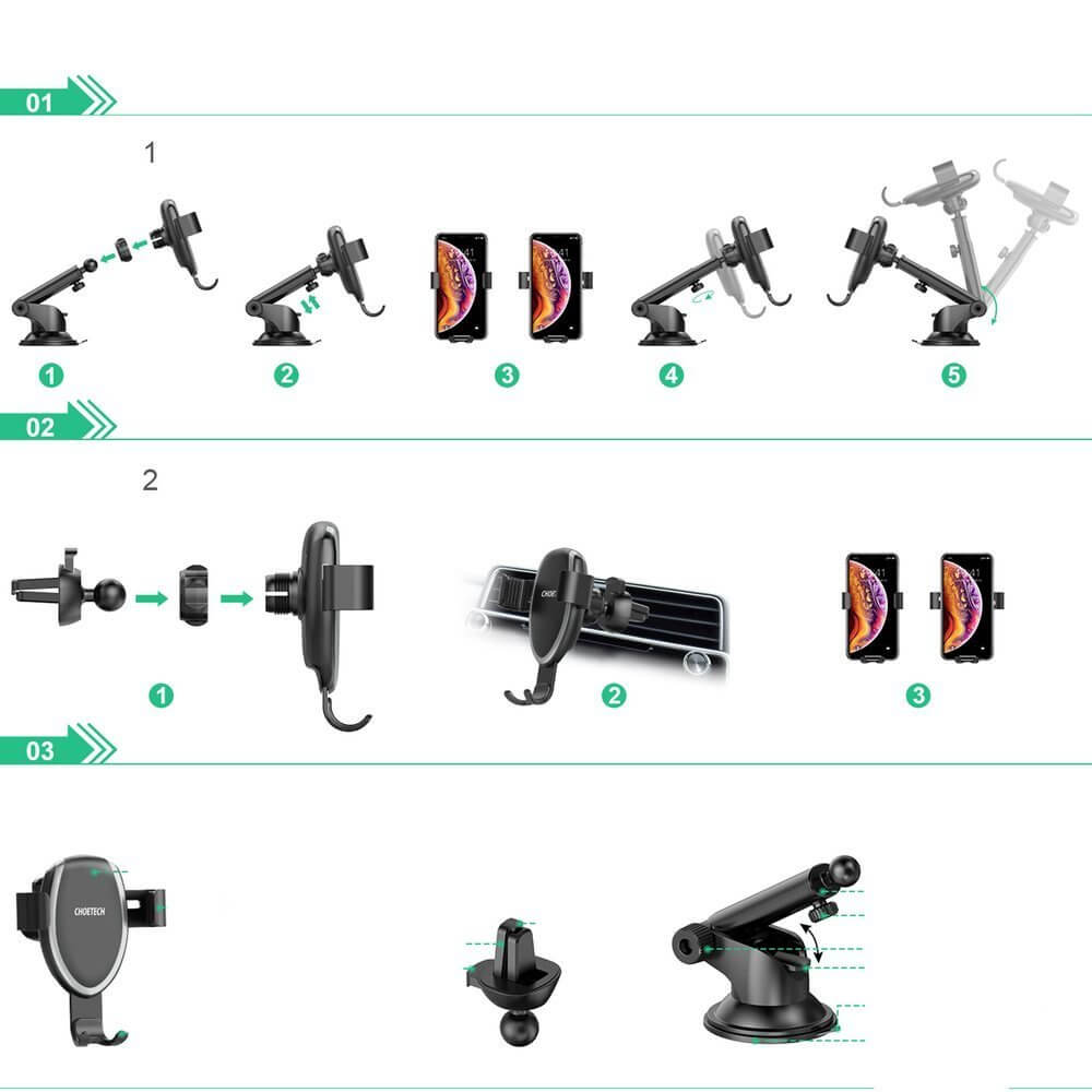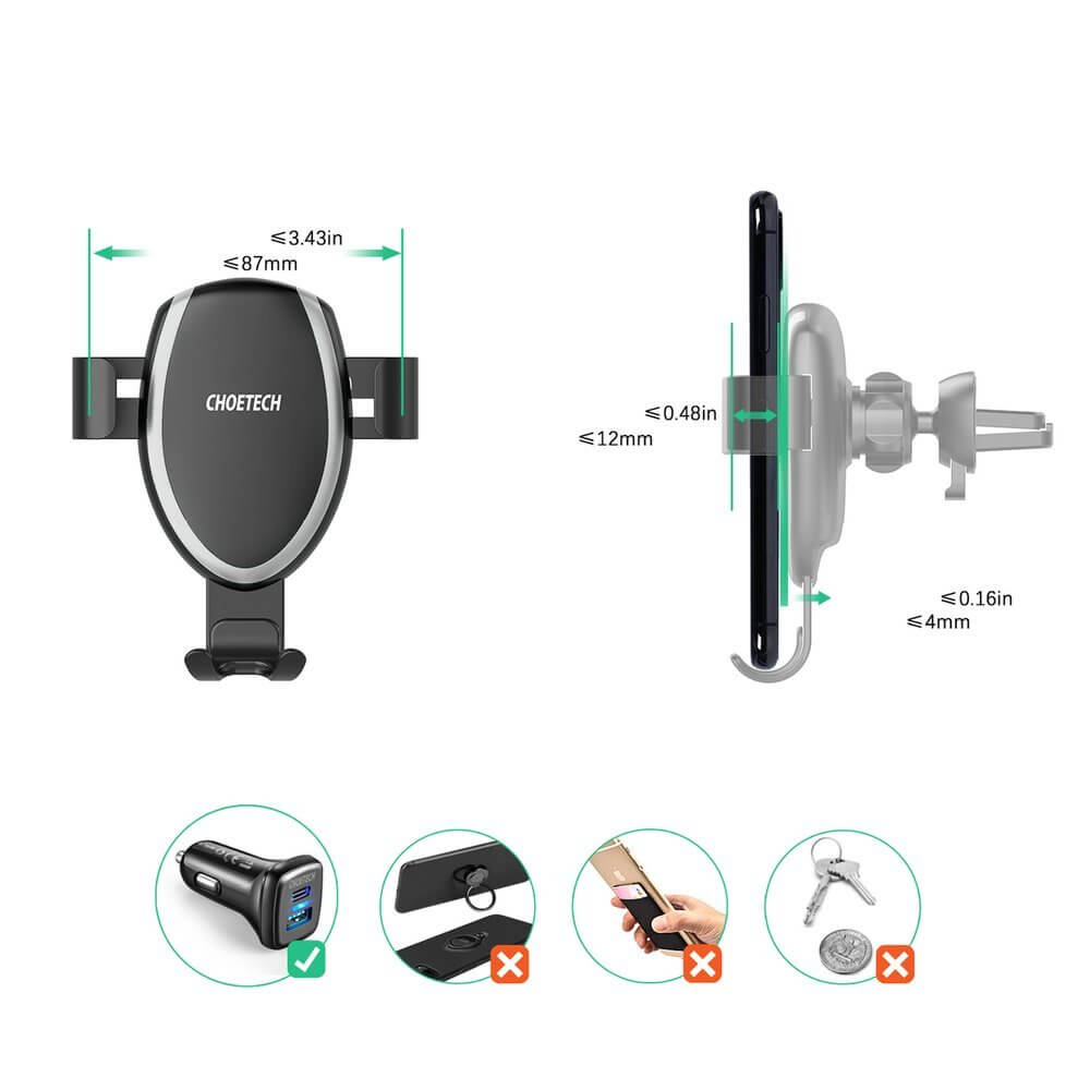 - Внимание: за да се възползвате от безжичното зареждане на поставката, ви е необходимо зарядно за кола, към което да свържете включения в комплекта microUSB кабел. Технологията за бързо зареждане на поставката е налична само когато зарядното за кола е с функция за бързо зареждане.