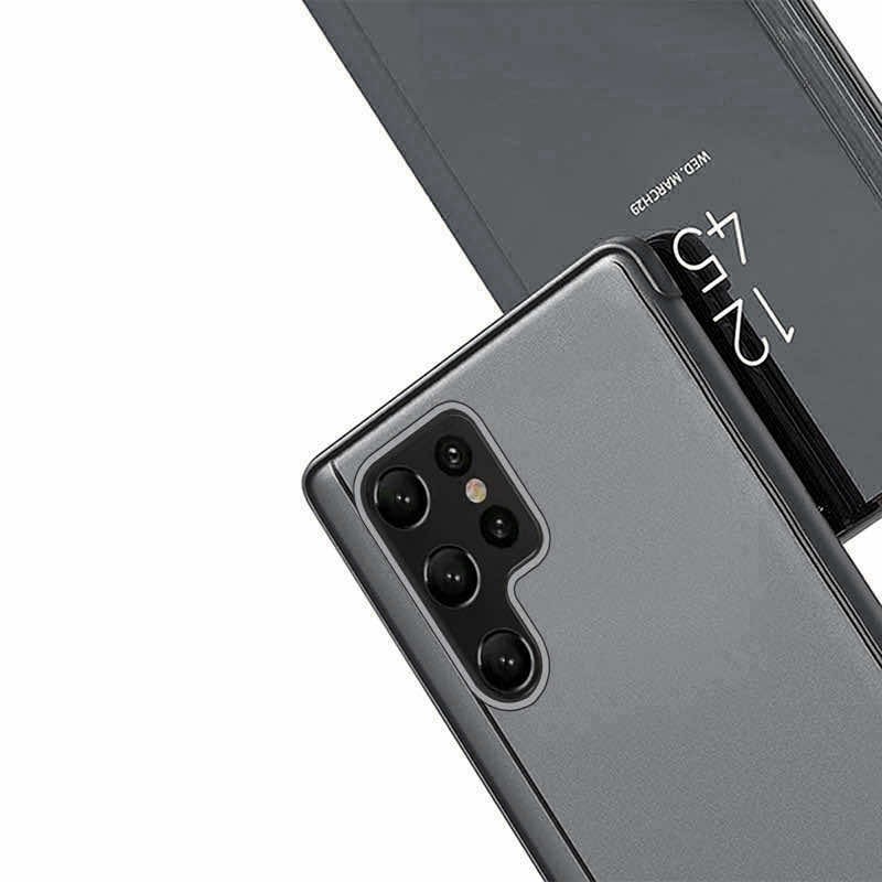 Clear View Stand Cover - кейс с поставка, през който виждате информация от дисплея за Samsung Galaxy S22 Ultra (черен)