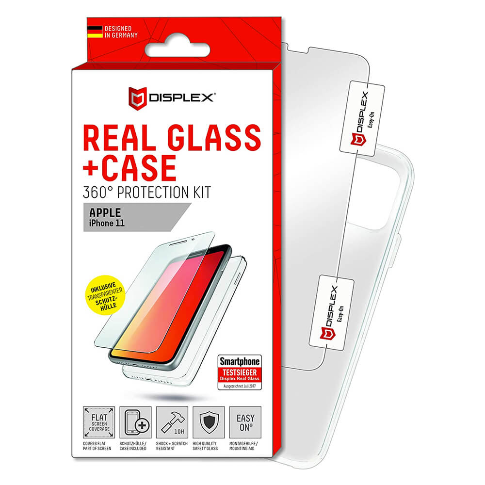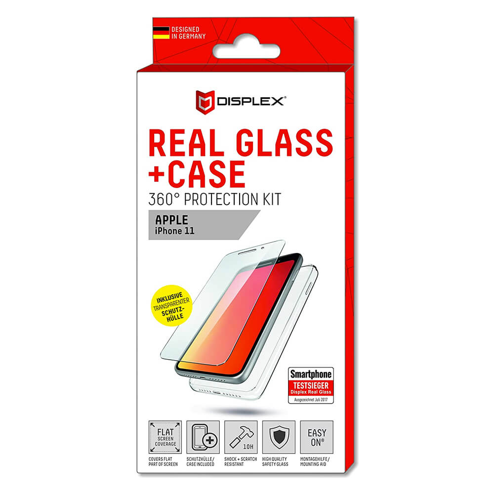 Displex Real Glass 10H Protector 2D with TPU Case - комплект силиконов калъф и калено стъклено защитно покритие за дисплея на iPhone 11 (прозрачен)